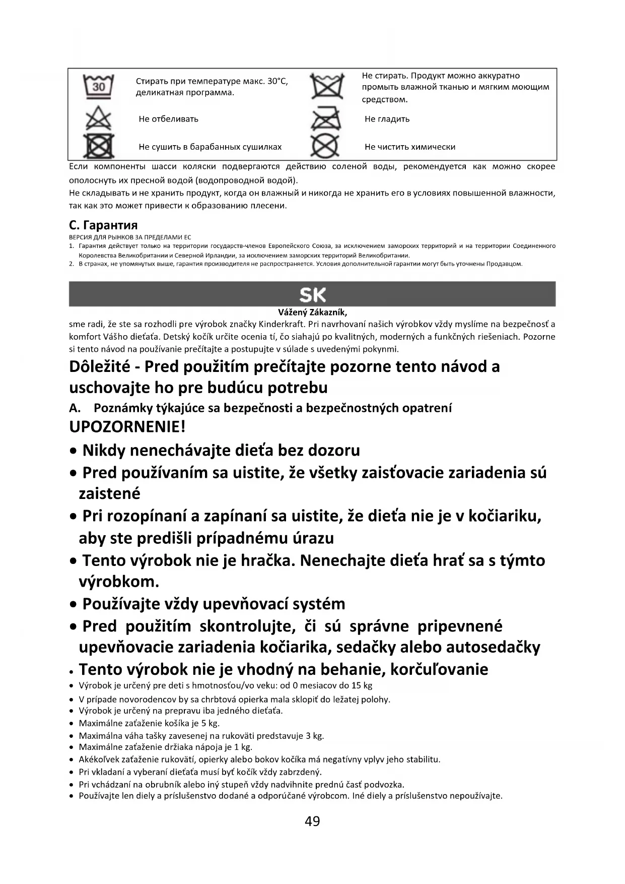 Výrobok sa nesmie chemicky čistiť V prípade, ak bol podvozok vystavený pôsobeniu slanej vody, odporúčame ho čo možno najrýchlejšie opláchnuť sladkou vodou (z vodovodu). Neskladajte ani neskladujte výrobok, ktorý je mokrý, ani ho neskladujte vo vlhkom prostredí, keďže to môže viesť k vzniku plesní. C. Záruka