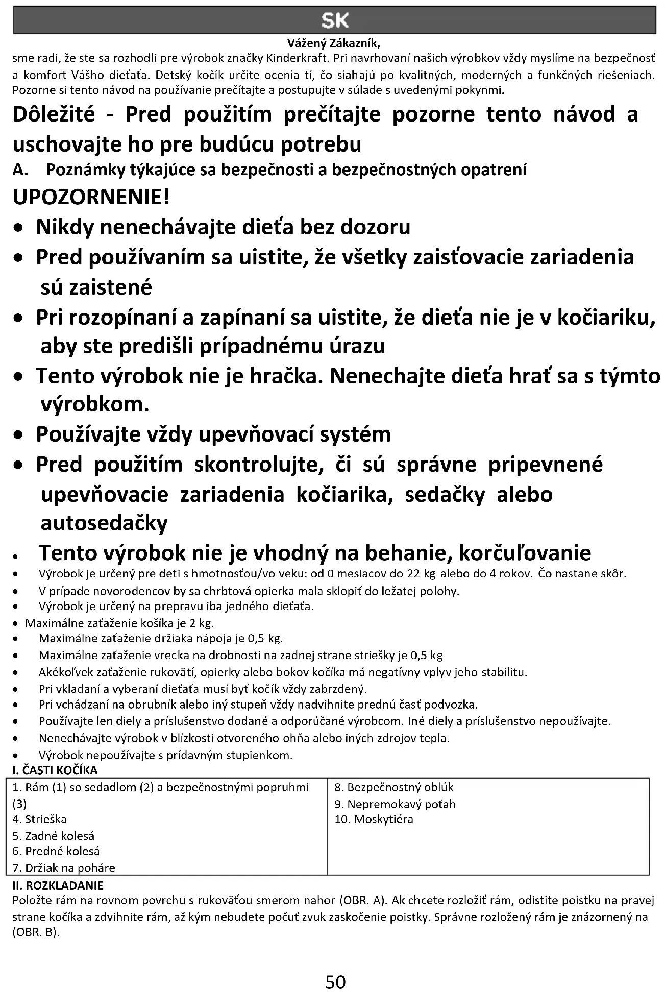 Vážený Zákazník, sme radi,ىže ste sa rozhodli pre výrobok značky Kinderkraft. Pri navrhovaníىnašich výrobkov vždy myslíme na bezpečnosťى a komfort Vášho dieťaťa. Detskýىkočík určite ocenia tí,ى čo siahajúىpo kvalitných, moderných a funkčných riešeniach. Pozorneىsiىtentoىnávodىnaىpoužívanieىprečítajteىaىpostupujteىvىsúladeىsىuvedenýmiىpokynmi. Dôležité - Pred použitím prečítajte pozorne tento návod a uschovajte ho pre budúcu potrebu A. Poznámky týkajúce sa bezpečnosti a bezpečnostných opatrení UPOZORNENIE!