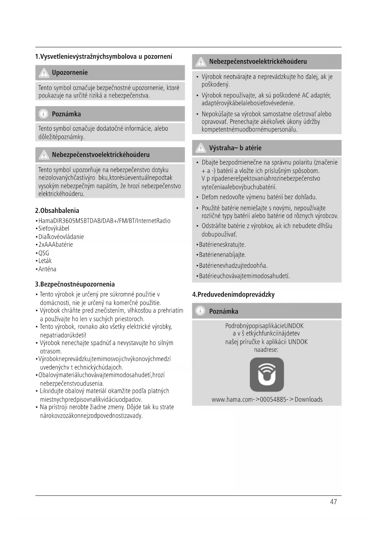 Poznámka Podrobný popis aplikácie UNDOK avšetkých funkcií nájdete v našej príručke kaplikácii UNDOK na adrese: www.hama.com -