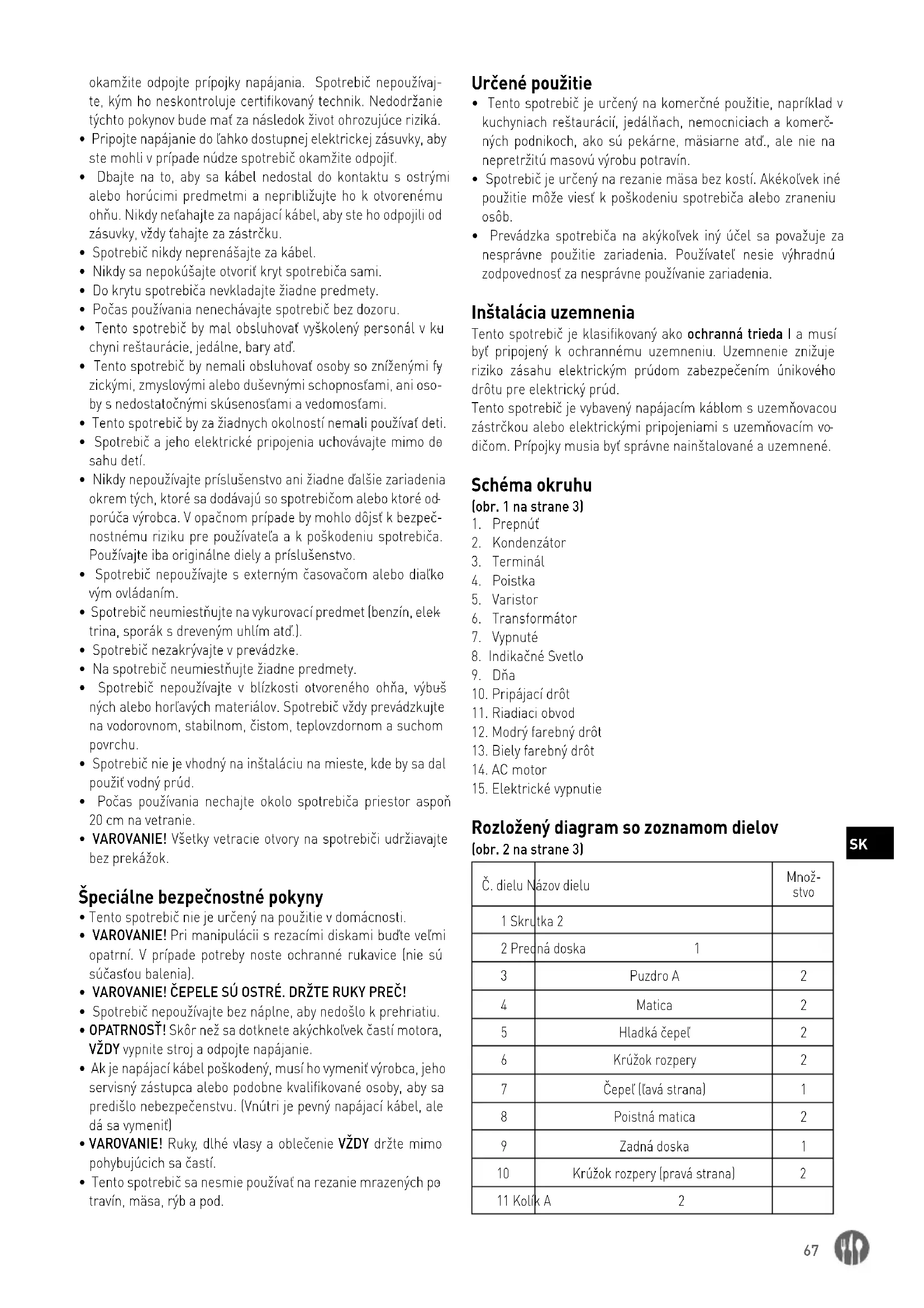 - Spotrebič je určený na rezanie mäsa bez kostí. Akékoľvek iné použitie môže viesť k poškodeniu spotrebiča alebo zraneniu osôb.