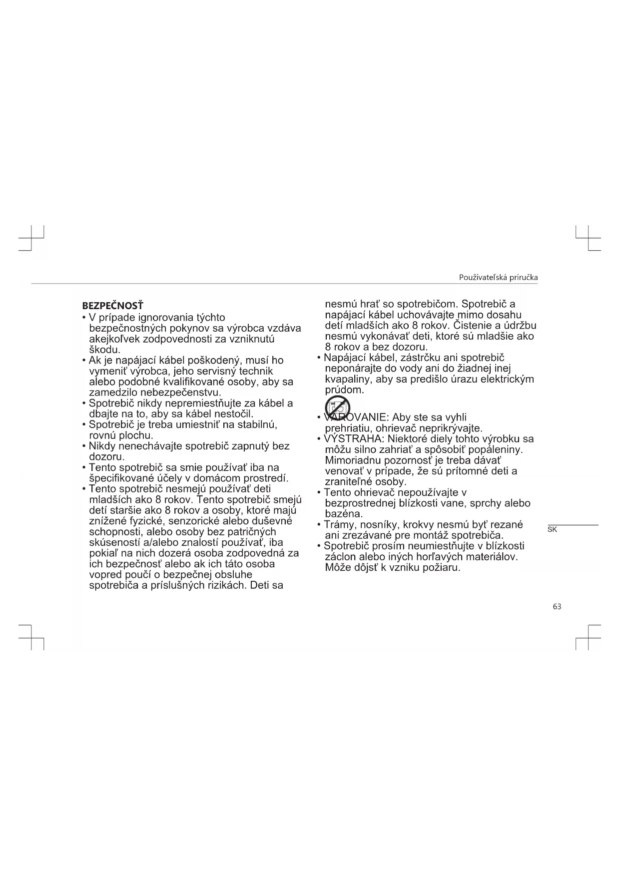 - Spotrebič prosím neumiestňujte v blízkosti záclon alebo iných horľavých materiálov. Môže dôjsť k vzniku požiaru. SKPoužívateľská príručka