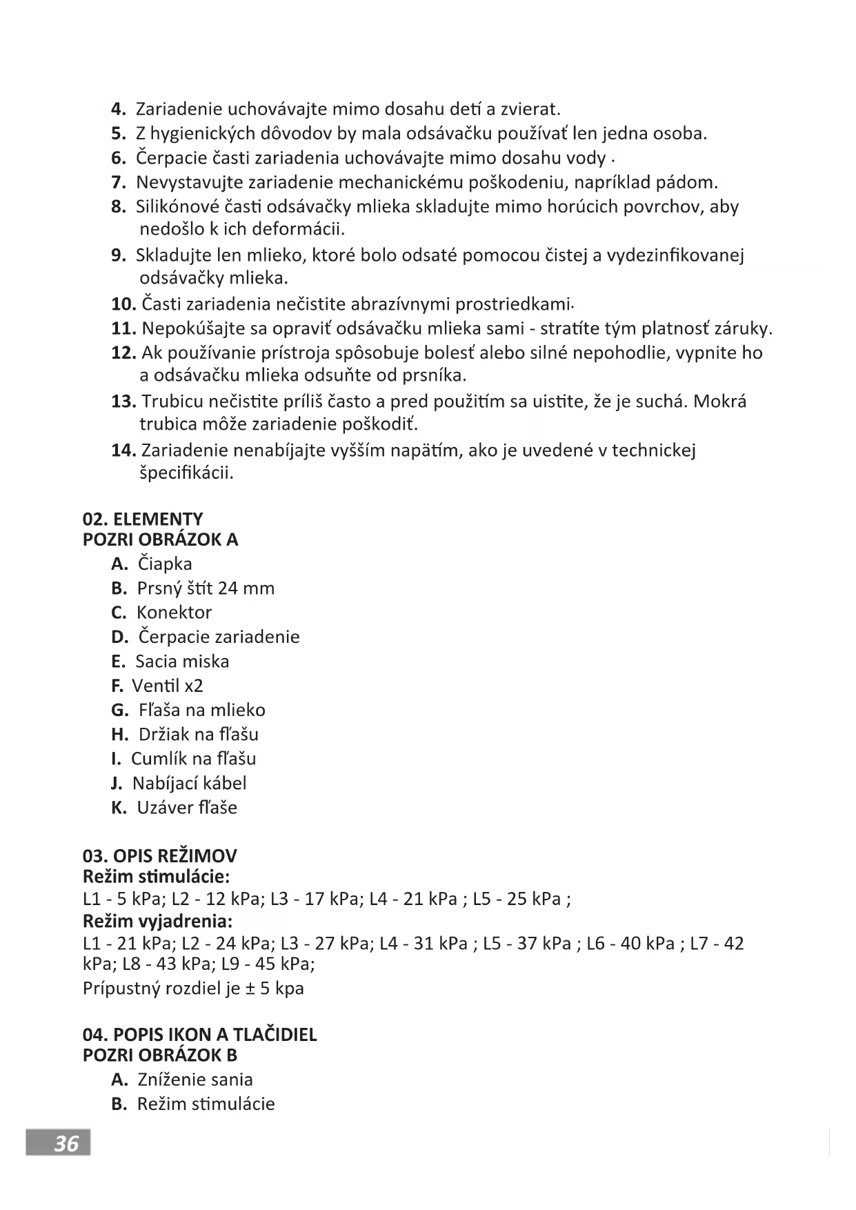 jeho súčasť. Nepoužívajte odsávačku mlieka, ak je niektorá z jej súčas zjavne poškodená.36
