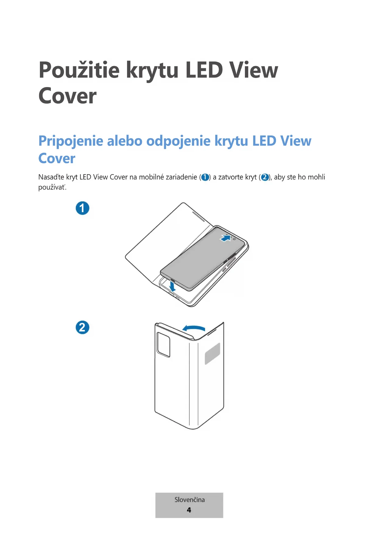 Použitie krytu LED View Cover Pripojenie alebo odpojenie krytu LED View Cover Nasaďte kryt LED View Cover na mobilné zariadenie ( ) a zatvorte kryt ( ), aby ste ho mohli používať.