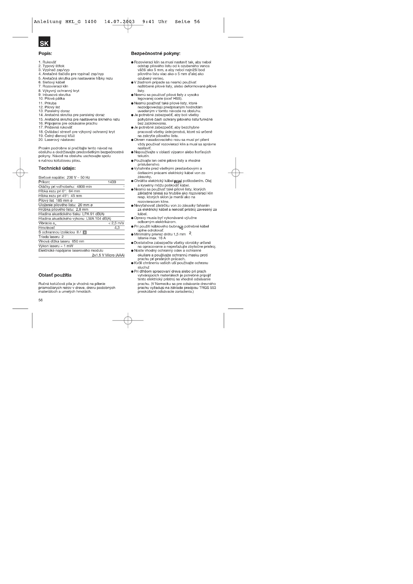HKL-G 1400 - Píla Global - Bezplatný návod na obsluhu