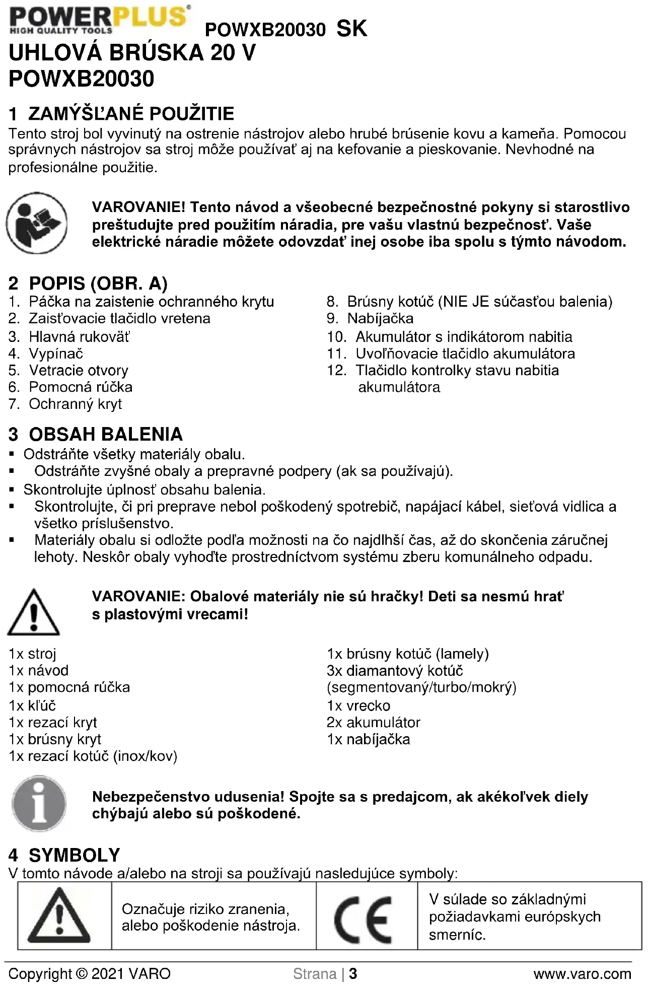 V súlade so základnými požiadavkami európskych smerníc.POWXB20030 SK Copyright © 2021 VARO Strana | 4 www.varo.com