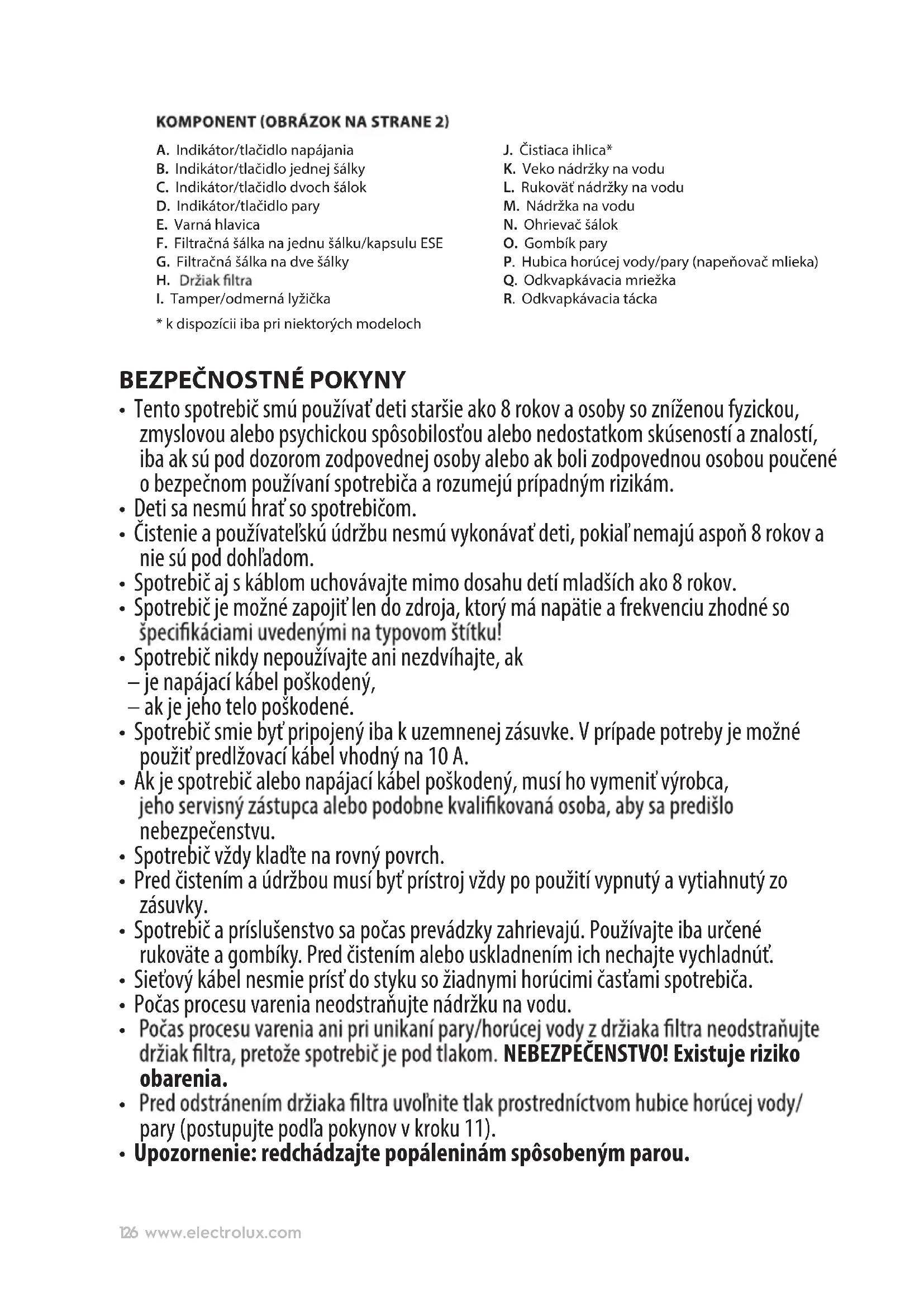 - Upozornenie: redchádzajte popáleninám spôsobeným parou.127www.electrolux.com