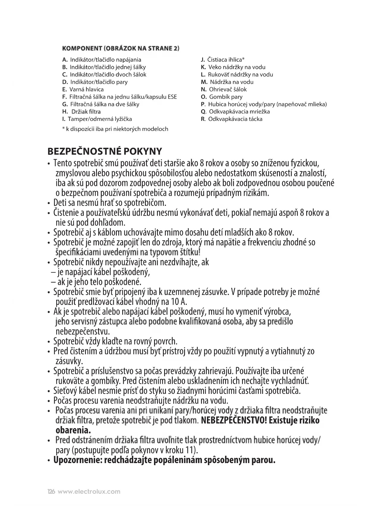 - Upozornenie: redchádzajte popáleninám spôsobeným parou.127www.electrolux.com