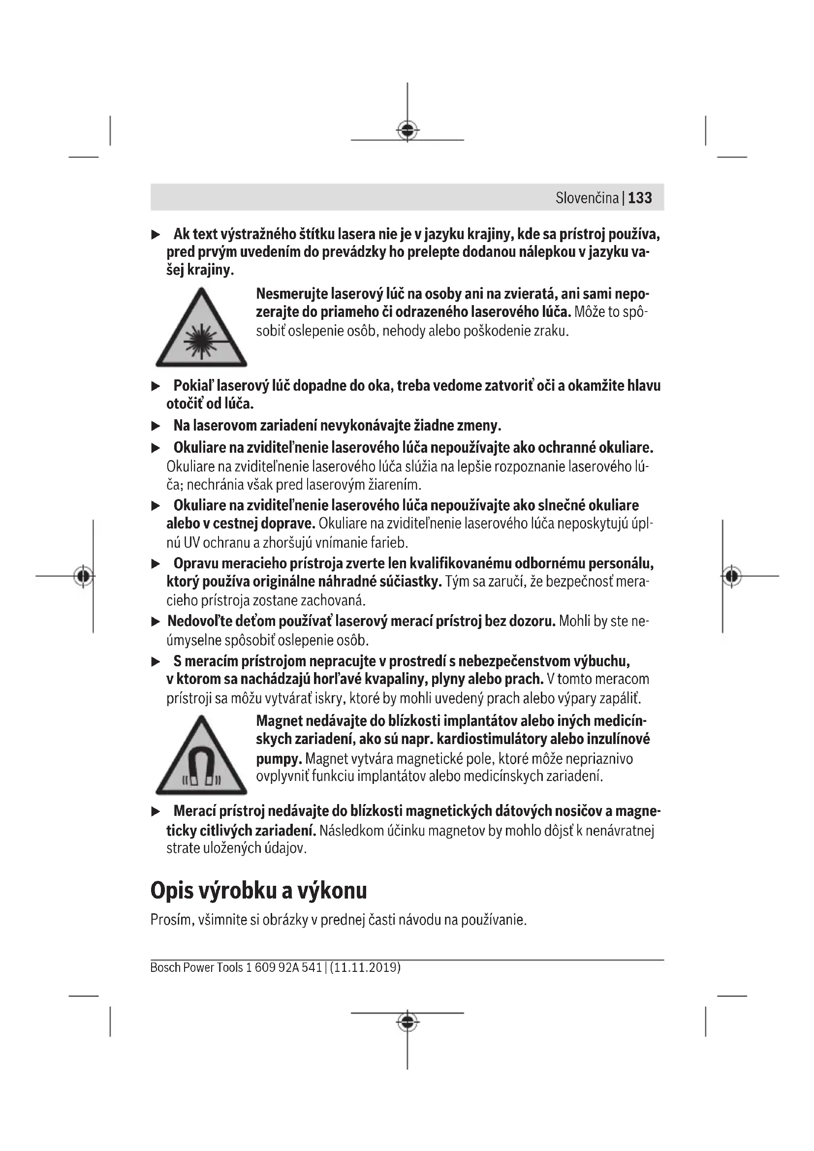 Vyobrazené alebo opísané príslušenstvo nepatrí do štandardného rozsahu dodávky. Kom- pletné príslušenstvo nájdete vnašom sortimente príslušenstva. Technické údaje Krížový laser AdvancedLevel 360 Vecné číslo 3 603 F63 B.. Pracovná oblasť (priemer) do cca