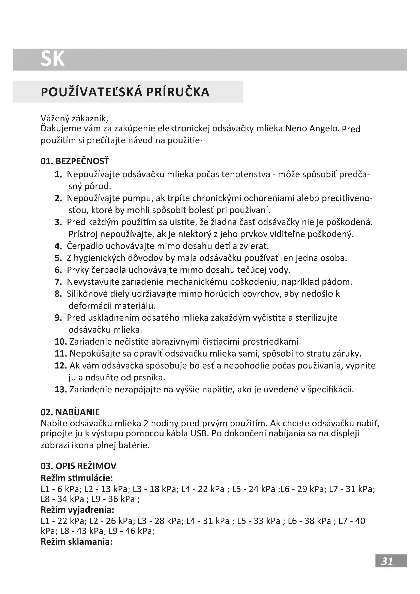 Vážený zákazník, Ďakujeme vám za zakúpenie elektronickej odsávačky mlieka Neno Angelo