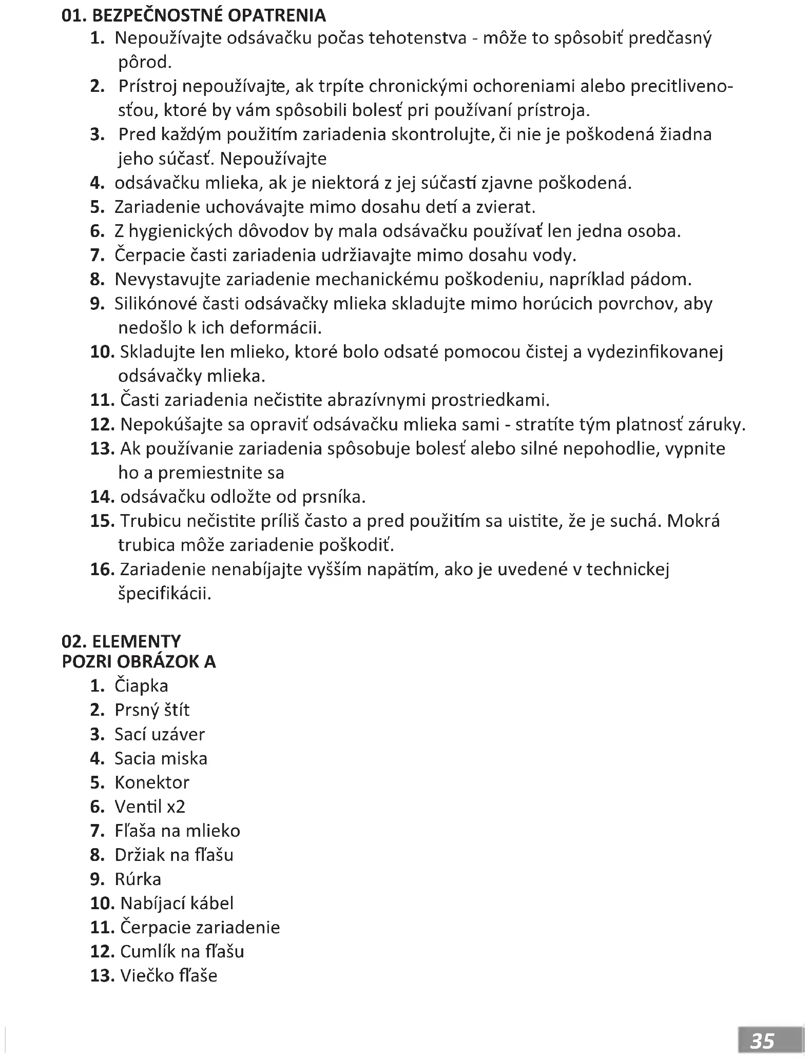 4. odsávačku mlieka, ak je niektorá z jej súčas zjavne poškodená.