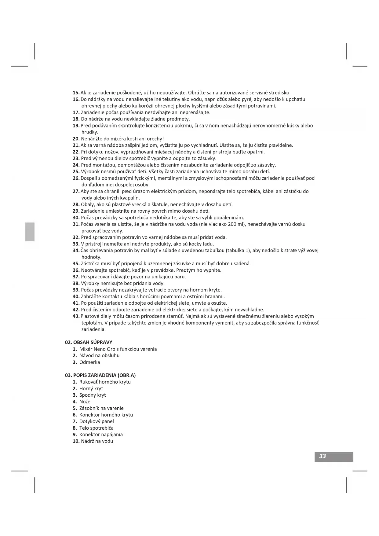 33. V prístroji nemeľte ani nedrvte produkty, ako sú kocky ľadu.