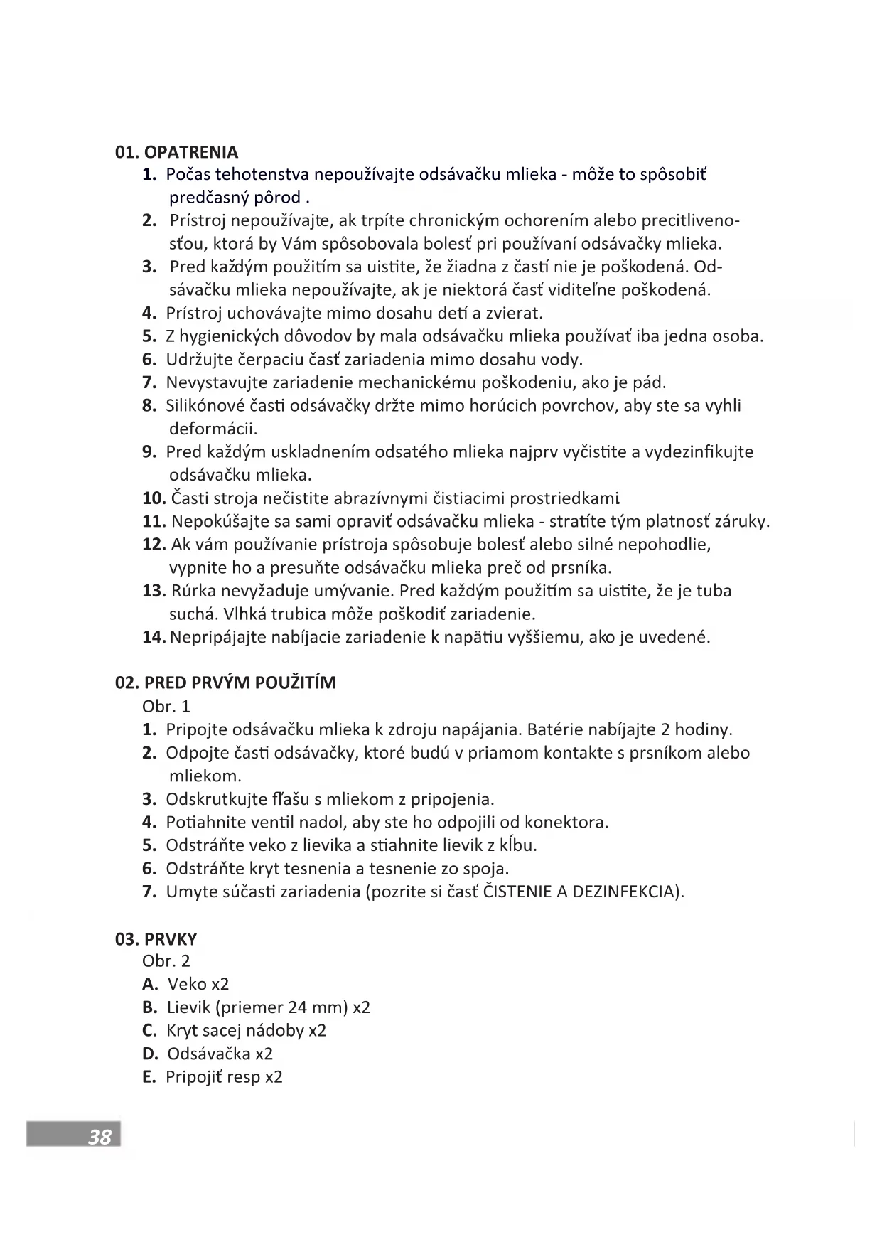 Umývanie a dezinfekcia sú dve rôzne činnos. Musia sa robiť oddelene, aby sa ochránilo vaše dieťa a aby sa zabezpečilo, že odsávačka mlieka správne funguje. Umývanie - umye povrchu prístroja a odstránenie nečistôt. Dezinfekcia – ničenie organizmov, ako sú baktérie alebo vírusy, ktoré sa môžu nachádzať na povrchu zariadenia. Kryt lievika a lievika, prvky odsávačky mlieka (kĺb, tesnenie, kryt tesnenia), aša a cumlík: Pred prvým použim - umye a dezinfekcia. Po každom použi - umye. Raz denne - dezinfekcia. POZOR: použi oddeľte a umyte všetky čas spotrebiča, ktoré prídu do kontaktu s mlie- kom . Vďaka tomu odstránite z mlieka usadeniny a zabránite množeniu baktérií.40 - Na čistenie používajte iba pitnú vodu z vodovodu. Ak voda z vodovodu nespĺňa túto požiadavku , použite balenú vodu . Pri čistení venlov nepoužívajte kefy . Dávajte pozor, aby ste venl neprepichli rovno. - Demontujte, umyte a opláchnite všetky čas odsávačky mlieka, ktoré prichá- dzajú do kontaktu s mliekom, okrem odsávačky . Pri umývaní čas odsávačky materského mlieka použite jemný prostriedok na umývanie riadu alebo mydlo . Obr. 4.A