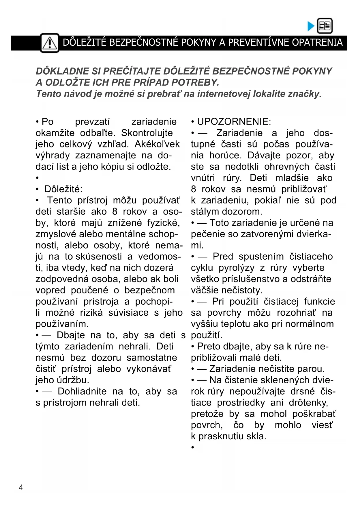 - Tento prístroj môžu používať deti staršie ako 8 rokov a oso- by, ktoré majú znížené fyzické, zmyslové alebo mentálne schop- nosti, alebo osoby, ktoré nema- jú na to skúsenosti a vedomos- ti, iba vtedy, keď na nich dozerá zodpovedná osoba, alebo ak boli vopred poučené o bezpečnom používaní prístroja a pochopi- li možné riziká súvisiace s jeho používaním.
