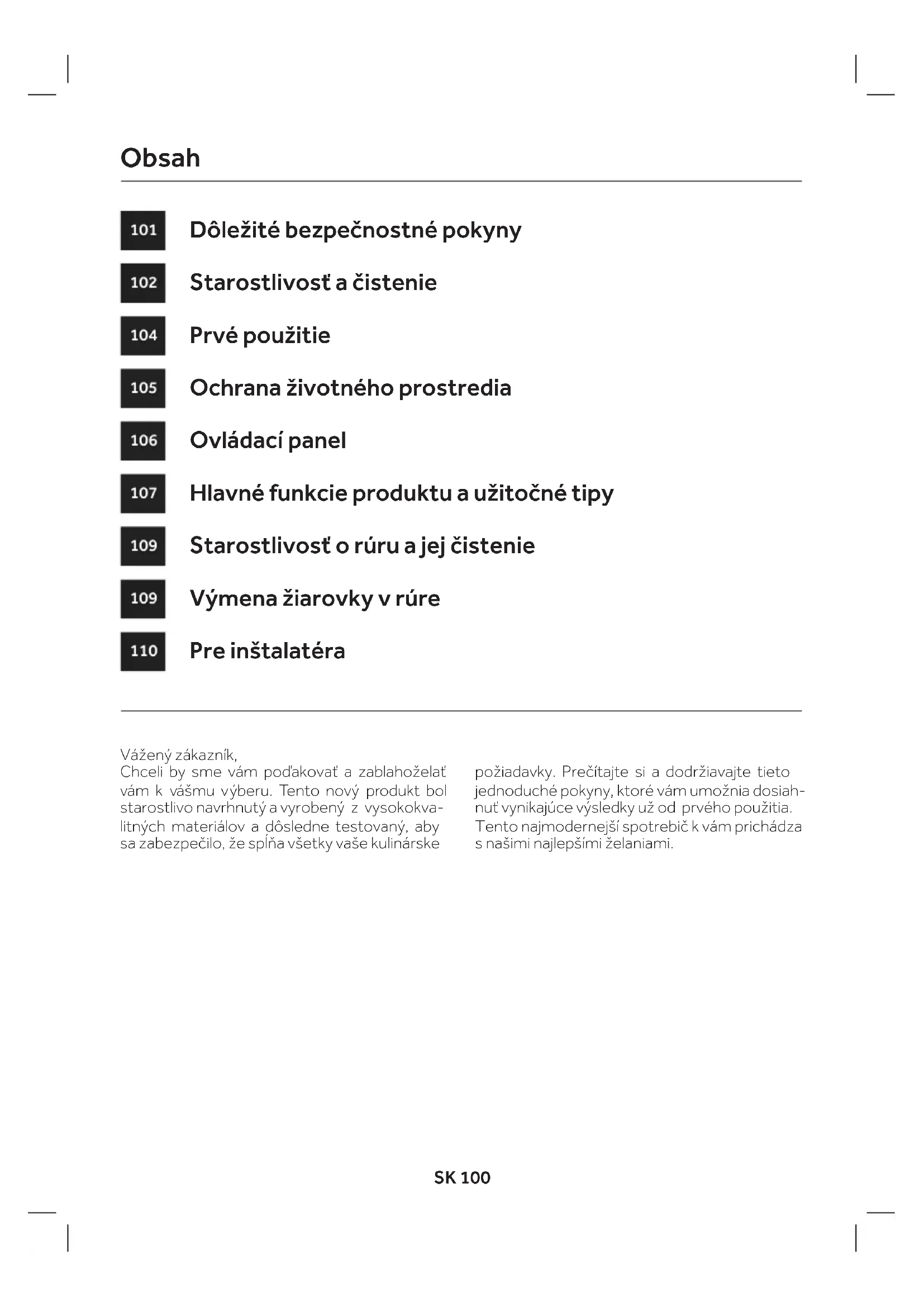 - Ako bezpečnostné opatrenie pred čistením rúry vždy odpojte zástrčku zo zásuvky alebo odpojte napájací kábel spotrebiča.SK 102