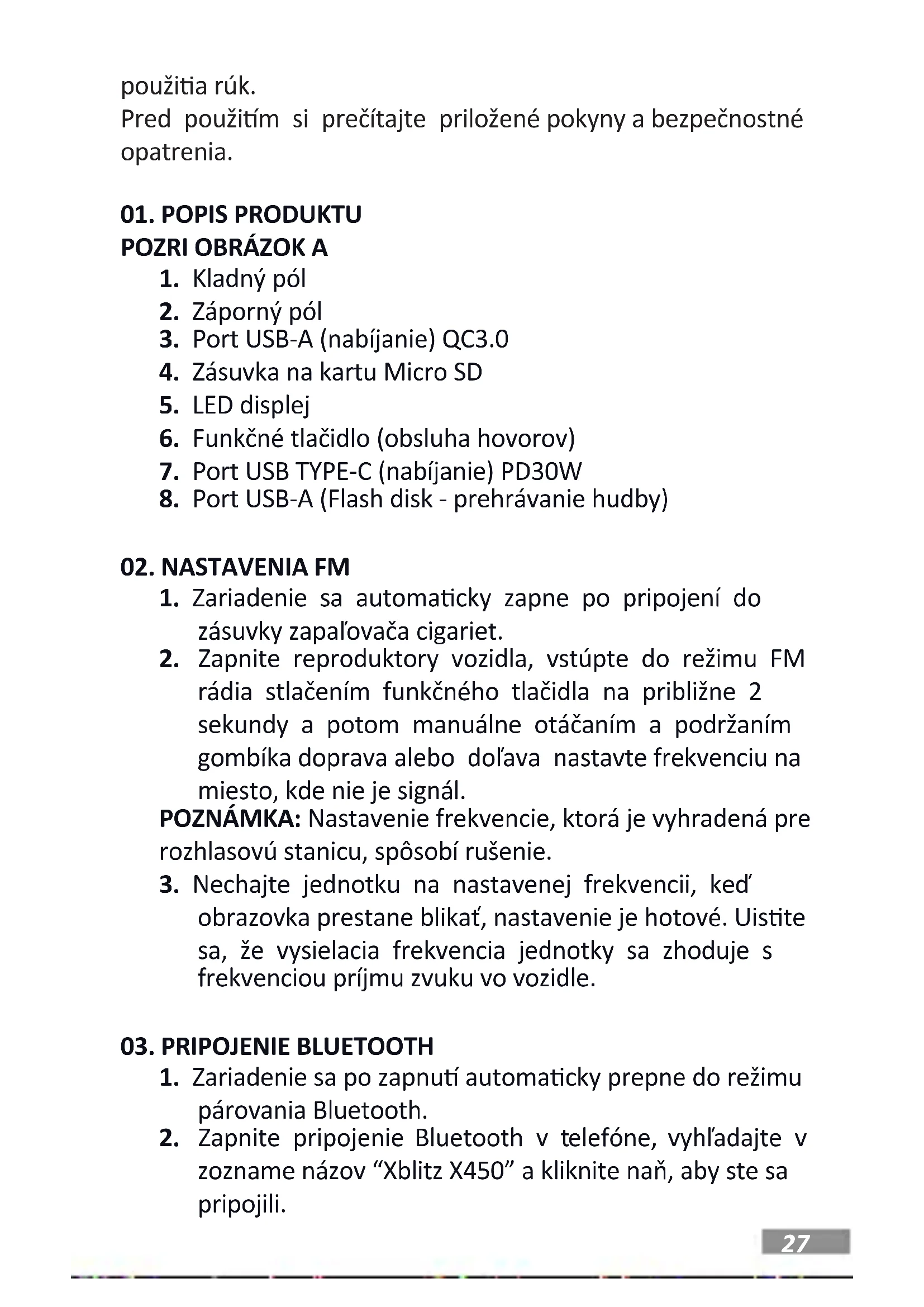 NÁVOD NA OBSLUHU X450 Xblitz