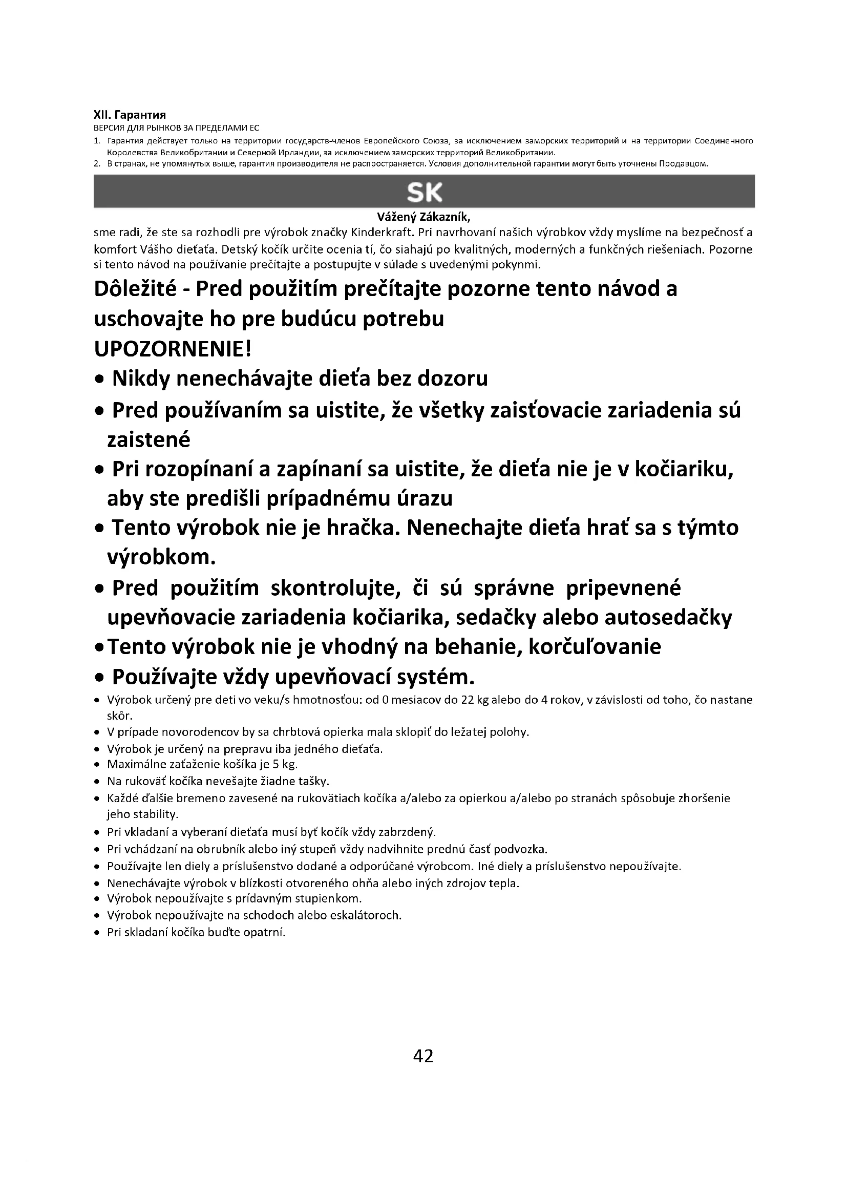 4. V niektorých krajinách je možné predĺžiť záruku na obmedzenú dobu až 120 mesiacov (10 rokov). Úplné podmienky a registračný formulár na predĺženie záruky sú k dispozícii na webovej stránke WWW.KINDERKRAFT.COM