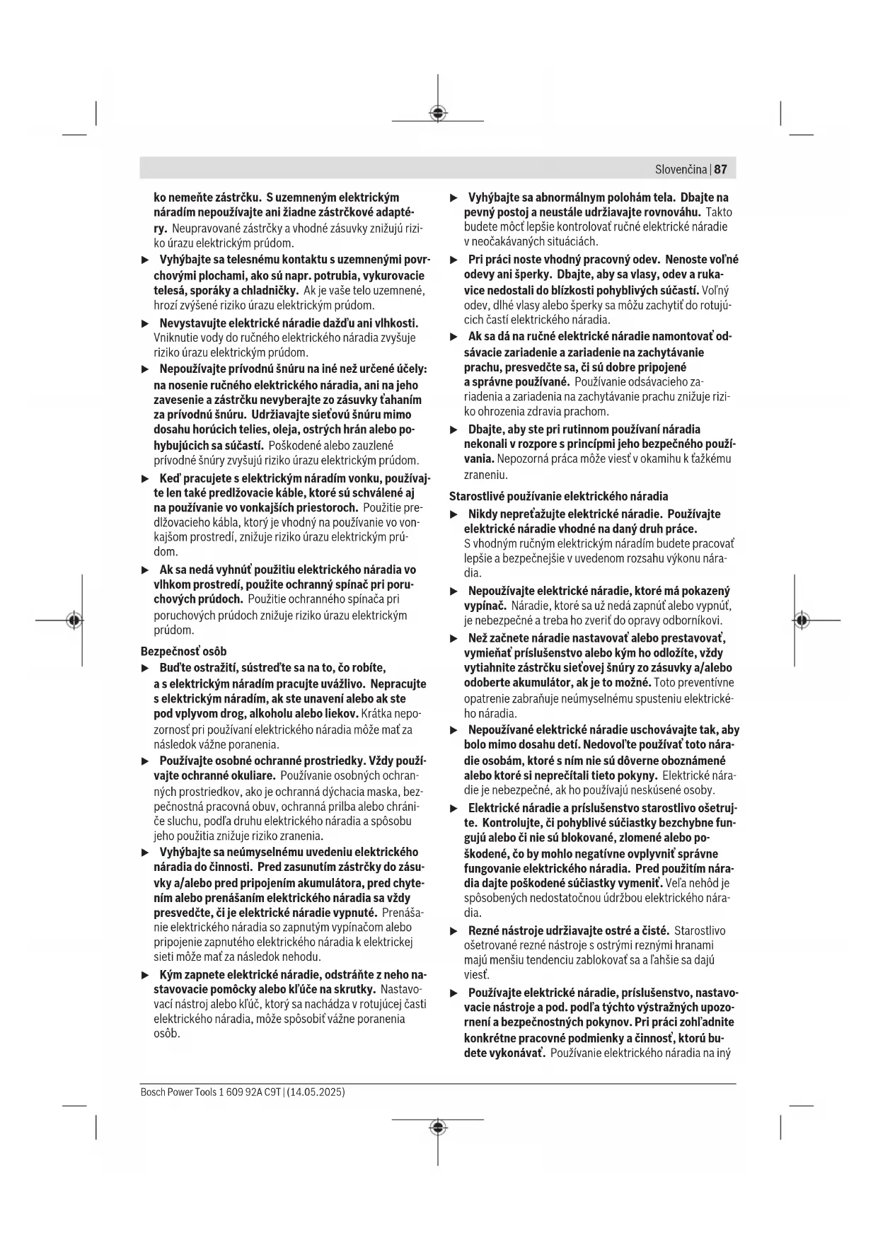 Hmotnosť podľa EPTA-Procedure 01:2014 kg 1,4 Trieda ochrany / II Údaje platia pre menovité napätie [U] 230 V. Pri odlišných napätiach avo vyhotoveniach špecifických pre jednotlivé krajiny sa môžu tieto údaje líšiť. Hodnoty sa môžu líšiť podľa výrobku azávisia od podmienok použitia aprostredia. Ďalšie informácie na adrese www.bosch-professional.com/wac. Informácia ohlučnosti/vibráciách Hodnoty emisií hluku zistené podľaEN62841-2-17. Úroveň hluku elektrického náradia pri použití váhového fil- traA je typicky: úroveň akustického tlaku86dB(A); úroveň akustického výkonu94dB(A). Neistota K=3dB. Noste prostriedky na ochranu sluchu! Celkové hodnoty vibrácií a