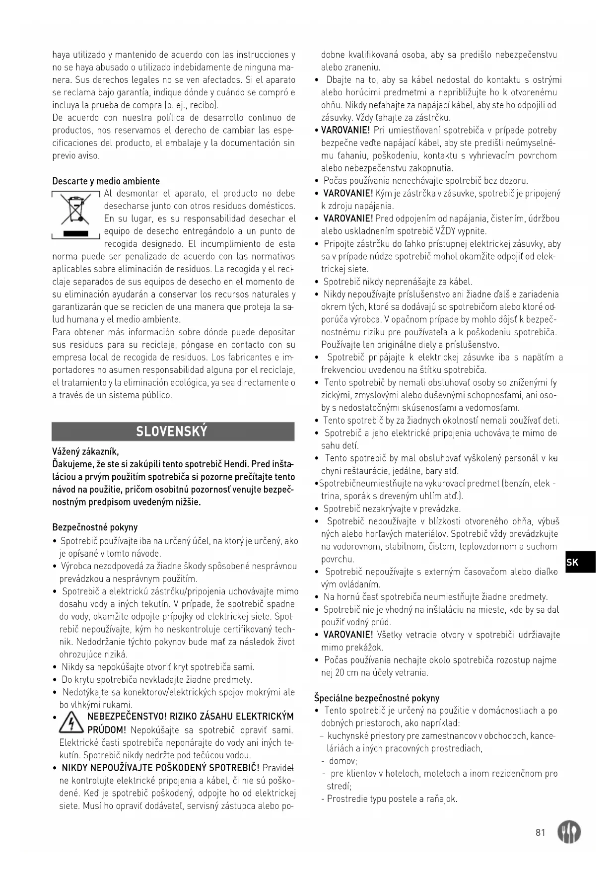 láciou a prvým použitím spotrebiča si pozorne prečítajte tento návod na použitie, pričom osobitnú pozornosť venujte bezpeč