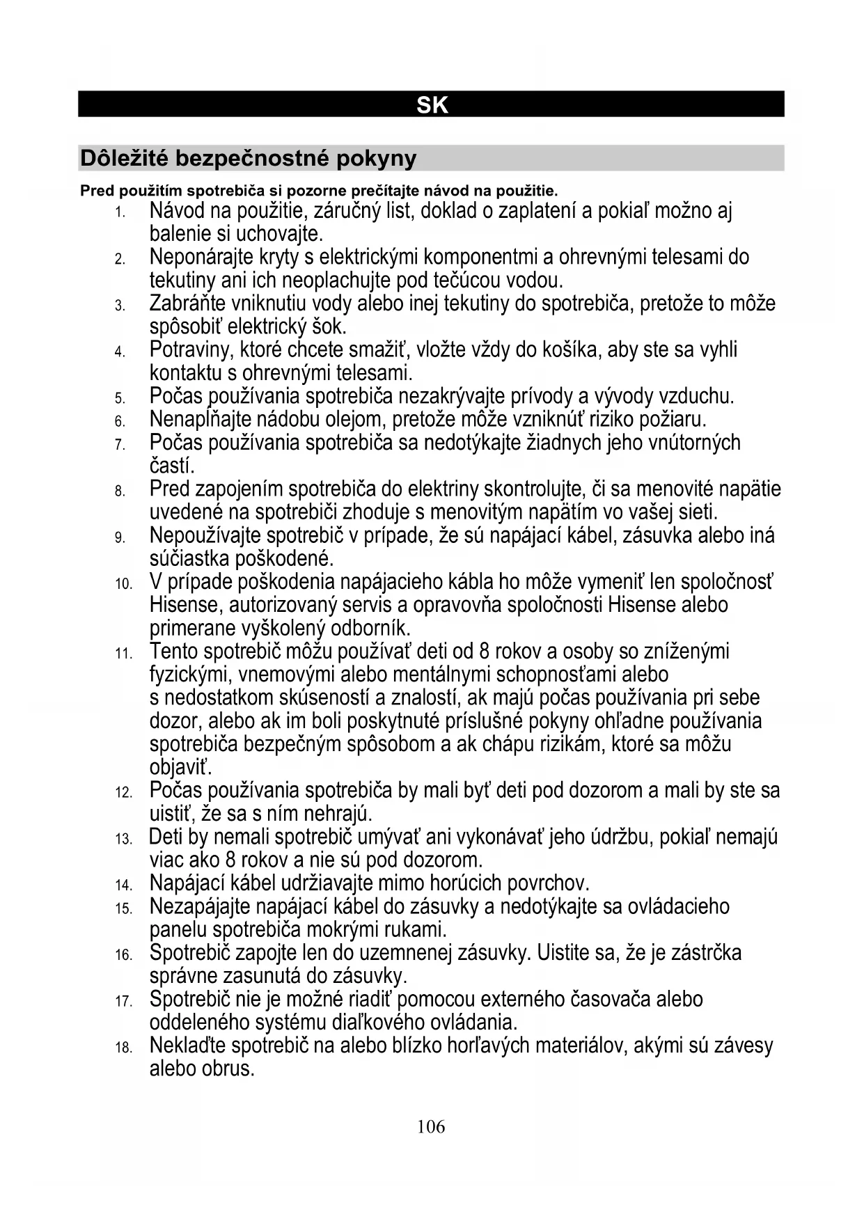 poloprofesionálne účely alebo v nesúlade s týmto návodom, záruka na neho stráca platnosť a spoločnosť Hisense nie je zodpovedná za žiadnu škodu spôsobenú takýmto použitím.