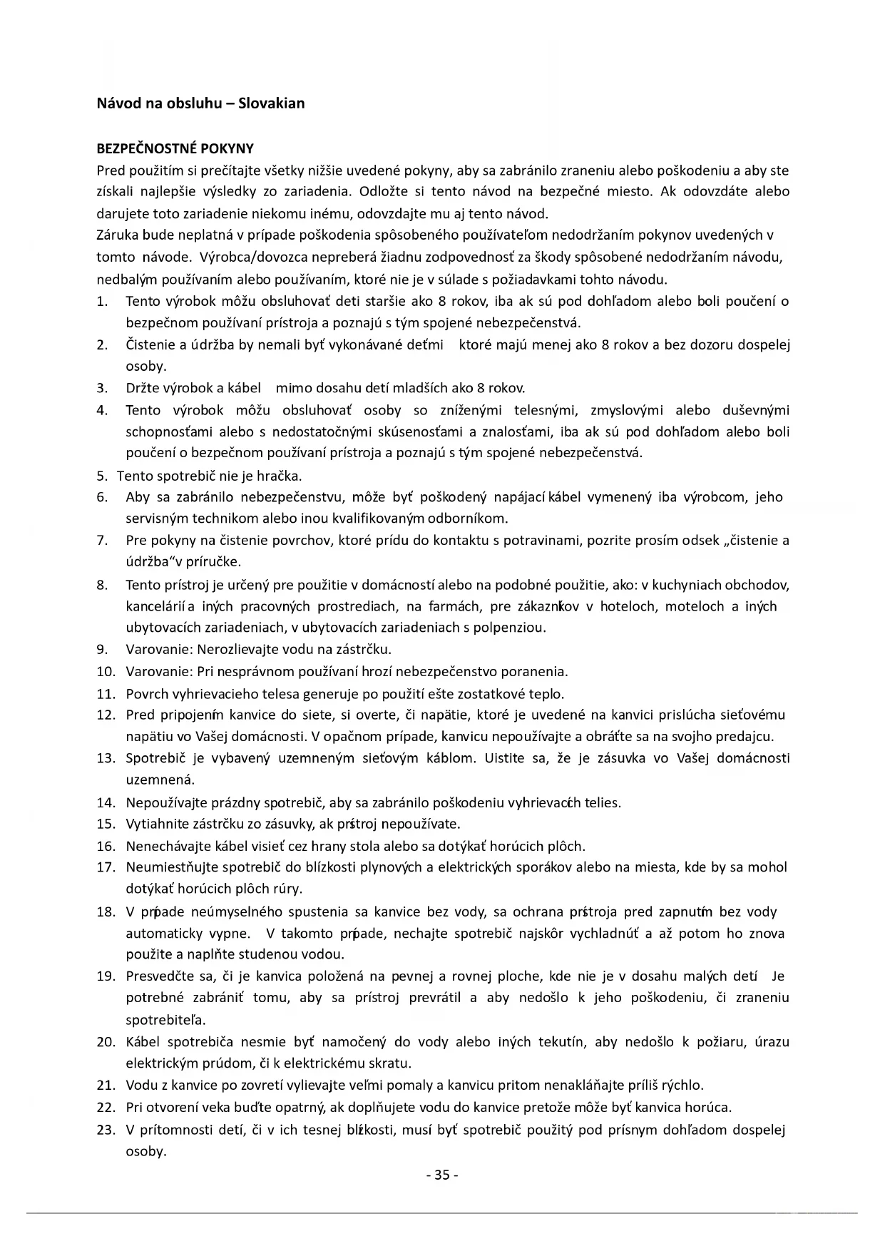 23. V prítomnosti detí, či v ich tesnej blízkosti, musí byť spotrebič použitý pod prísnym dohľadom dospelej