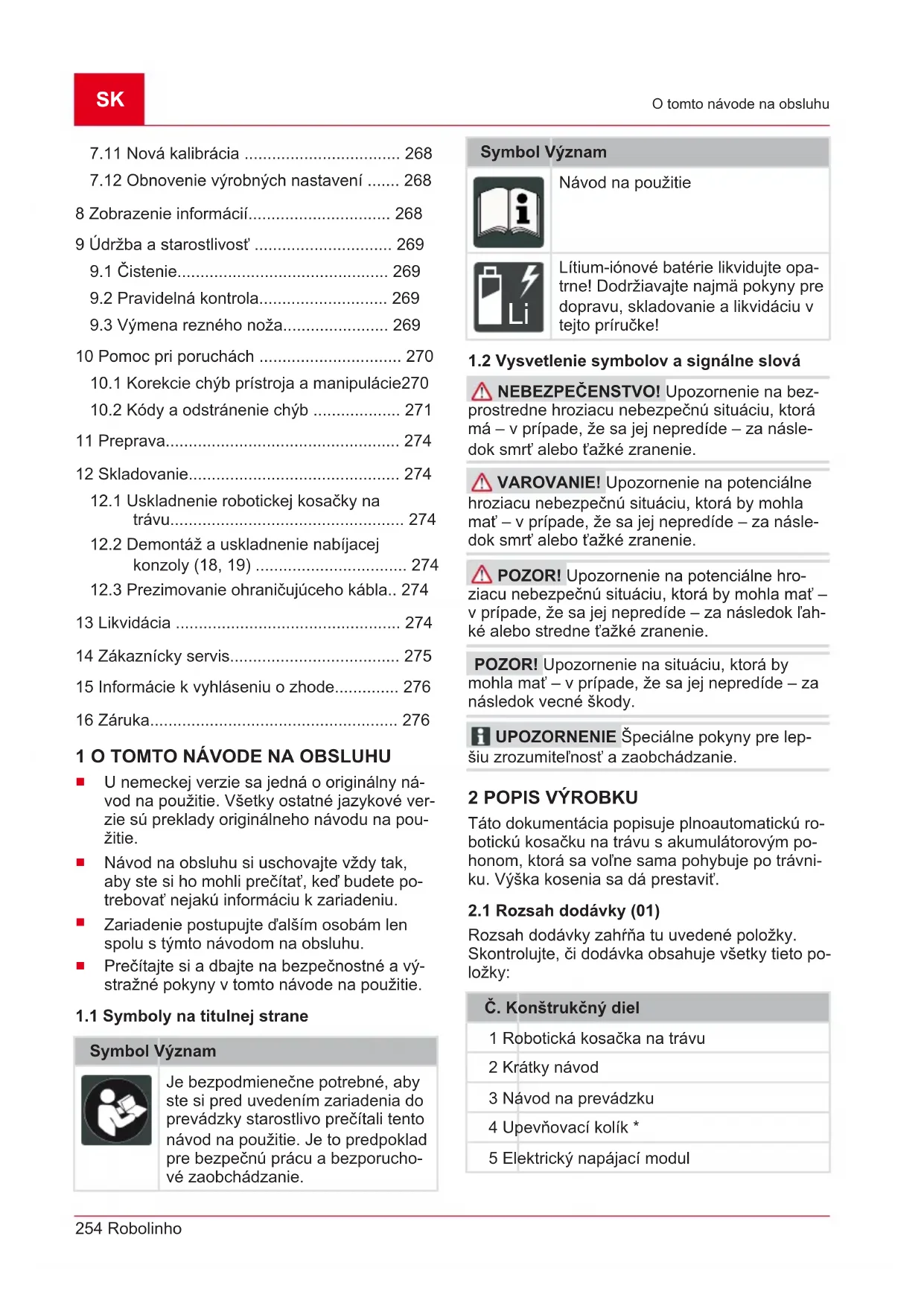 Prístroj nesmú používať mladiství do 16 ro- kov, osoby s obmedzenými telesnými, zmys- lovými alebo duševnými schopnosťami, resp. s nedostatkom skúseností a vedomostí a aniSK 260 Robolinho Montáž osoby, ktoré nepoznajú návod na prevádzku. Rešpektujte bezpečnostné predpisy týkajúce sa minimálneho veku používateľa, eventuál- ne platné v danej krajine.