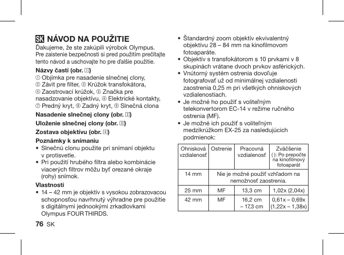NÁVOD NA OBSLUHU ZUIKO DIGITAL ED 14 OLYMPUS