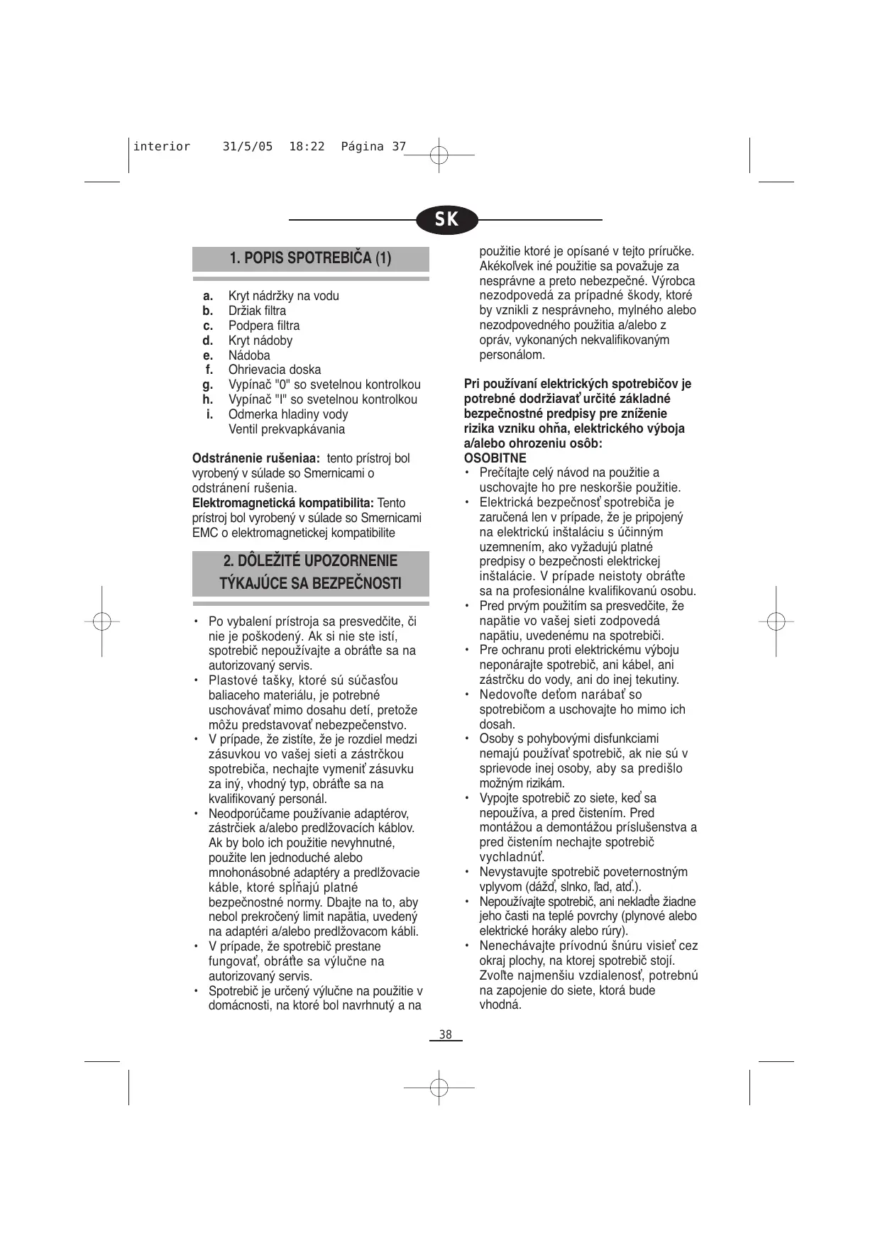 - Horuca tekutina v nádobe moze v prípade poskodenia spôsobit' popálényi. Aby ste predisci poskodeniu nádoby, dodržujte nasledovné: