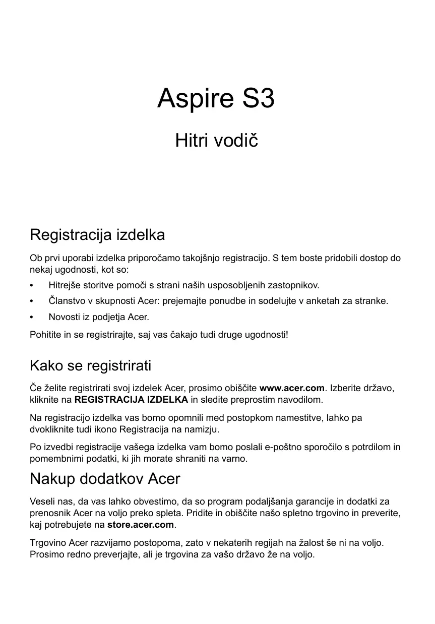 ASPIRE S3-371 - Prenosnik ACER - Brezplačna navodila za uporabo