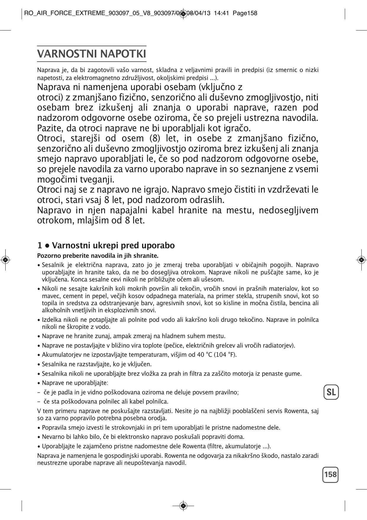 Téléchargez la notice de votre Brezžični sesalniki au format PDF gratuitement ! Retrouvez votre notice RH8753, RH8754, RH8758/01, RH8771, RH8775 01, RH8779 - ROWENTA et reprennez votre appareil électronique en main. Sur cette page sont publiés tous les documents nécessaires à l'utilisation de votre appareil RH8753, RH8754, RH8758/01, RH8771, RH8775 01, RH8779 de la marque ROWENTA.