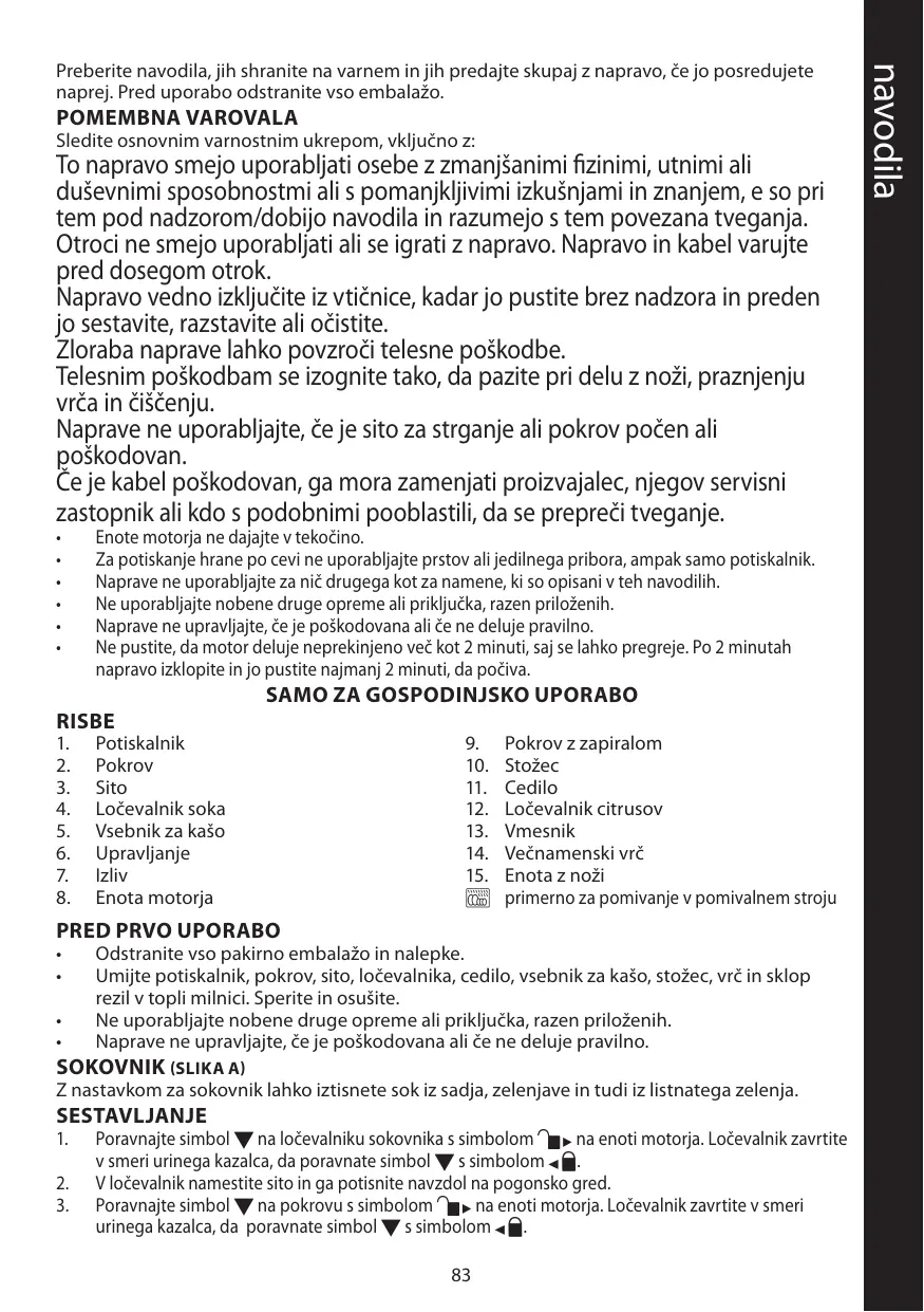 Lavez l’élément poussoir, le couvercle, le tamis, les séparateurs, le filtre, le collecteur de pulpe, le cône, la carafe et le set de lames dans de de l’eau chaude savonneuse. Rincez et séchez ces éléments.