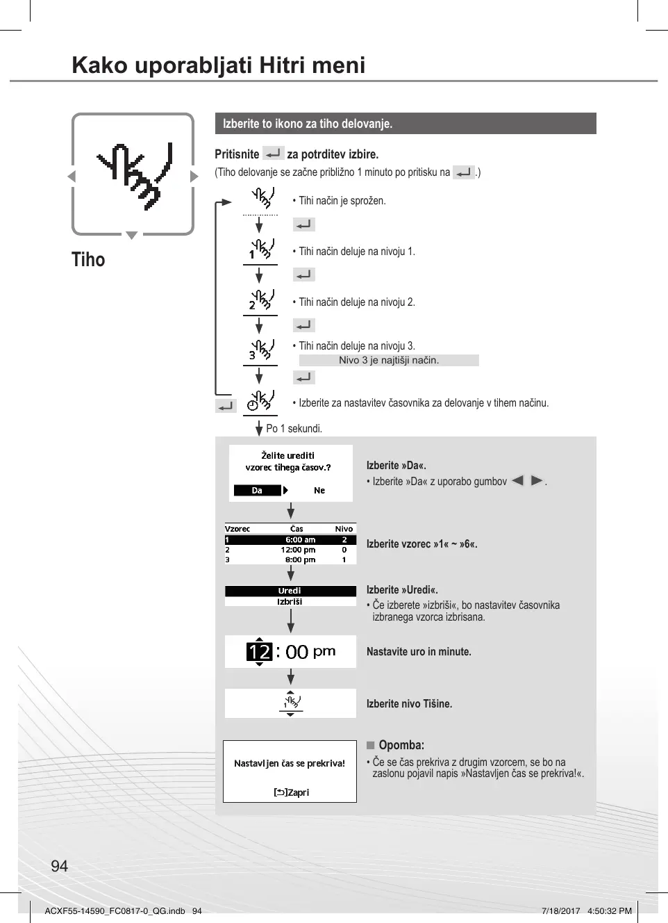 Pritisnite za potrditev izbire. (Tiho delovanje se začne približno 1 minuto po pritisku na .)