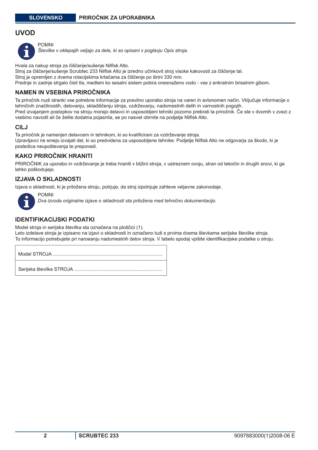 Téléchargez la notice de votre Avtomatski čistilec au format PDF gratuitement ! Retrouvez votre notice SCRUBTEC 233 - NILFISK et reprennez votre appareil électronique en main. Sur cette page sont publiés tous les documents nécessaires à l'utilisation de votre appareil SCRUBTEC 233 de la marque NILFISK.