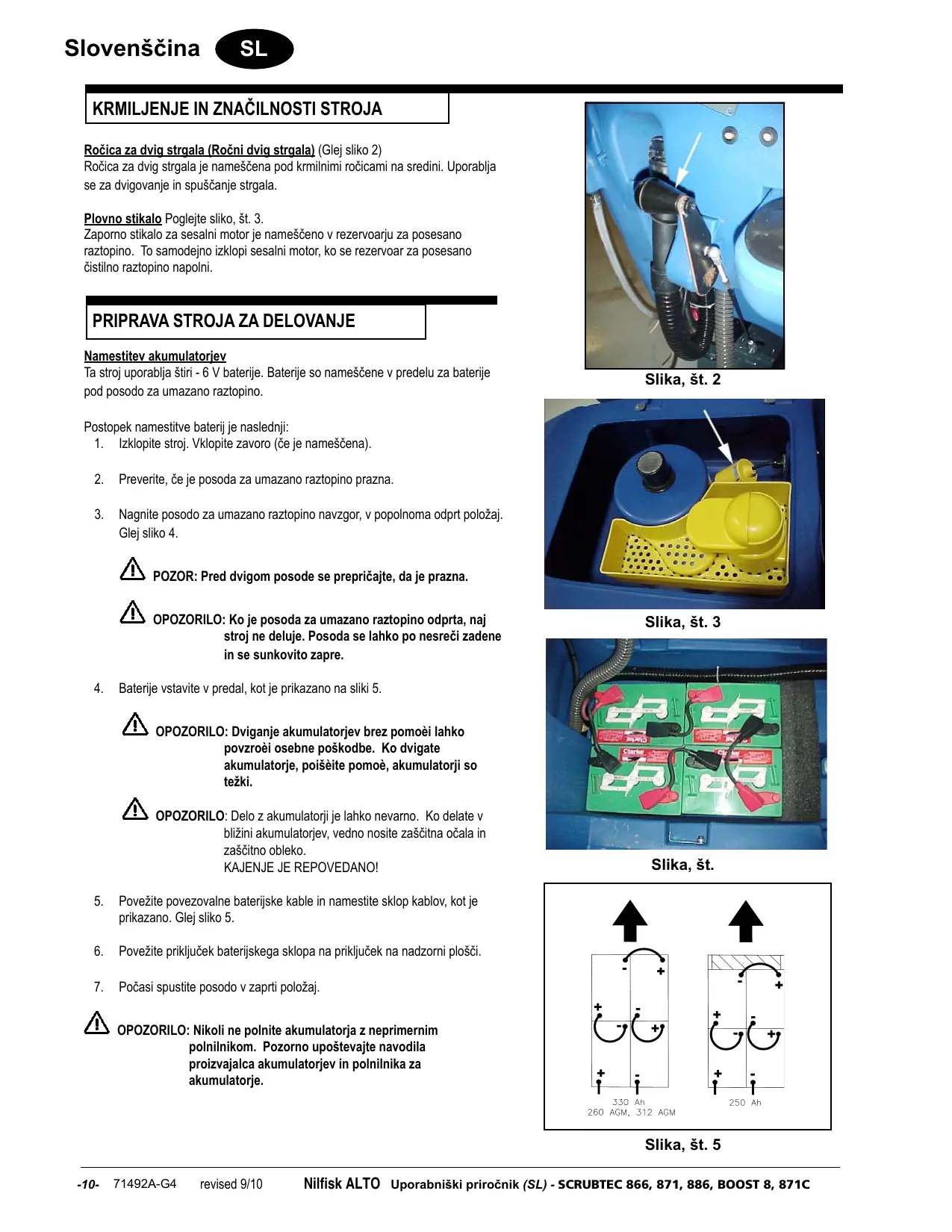 Nilfisk ALTO Uporabniëki priroënik (SL) - SCRUBTEC 866, 871, 886, BOOST 8, 871C 71492A-G4 -3-