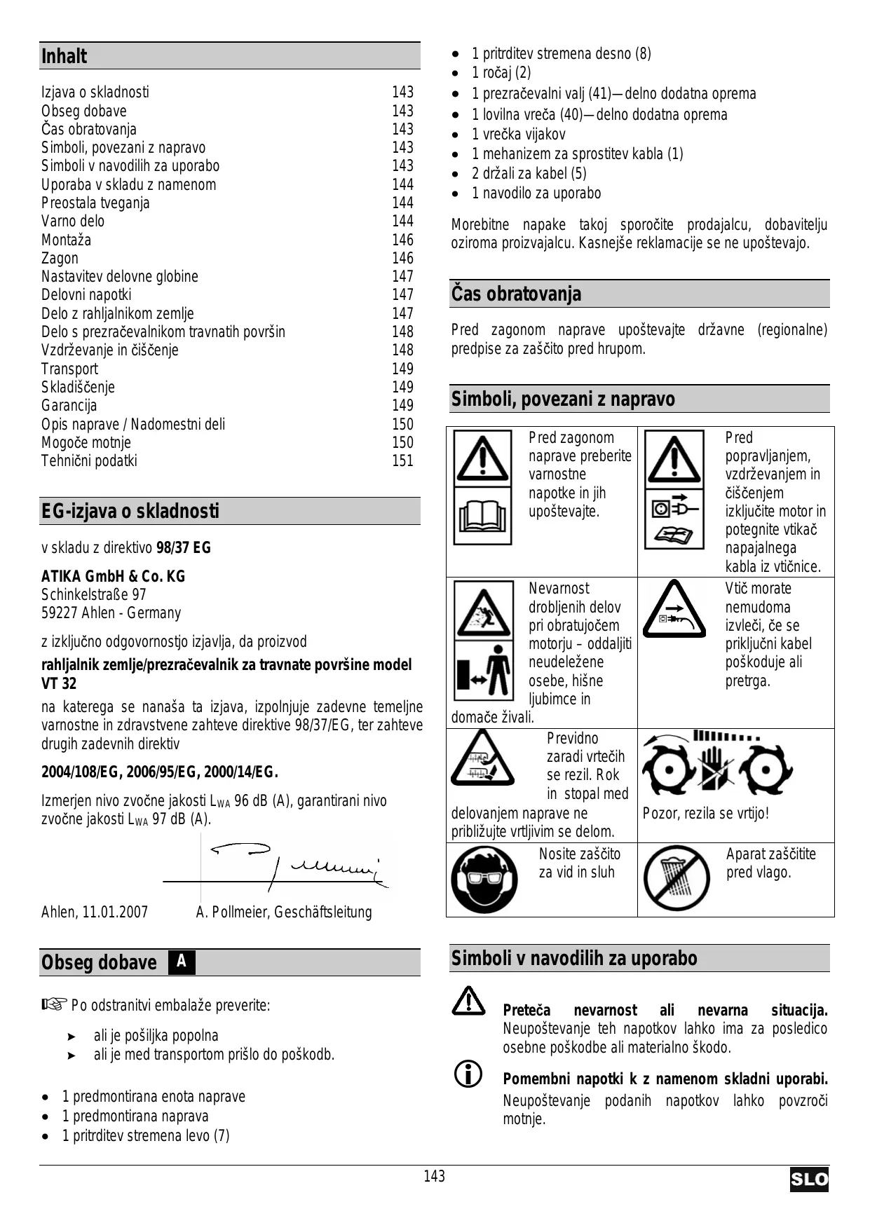 VT 32 - Scarifier ATIKA - Brezplačna navodila za uporabo
