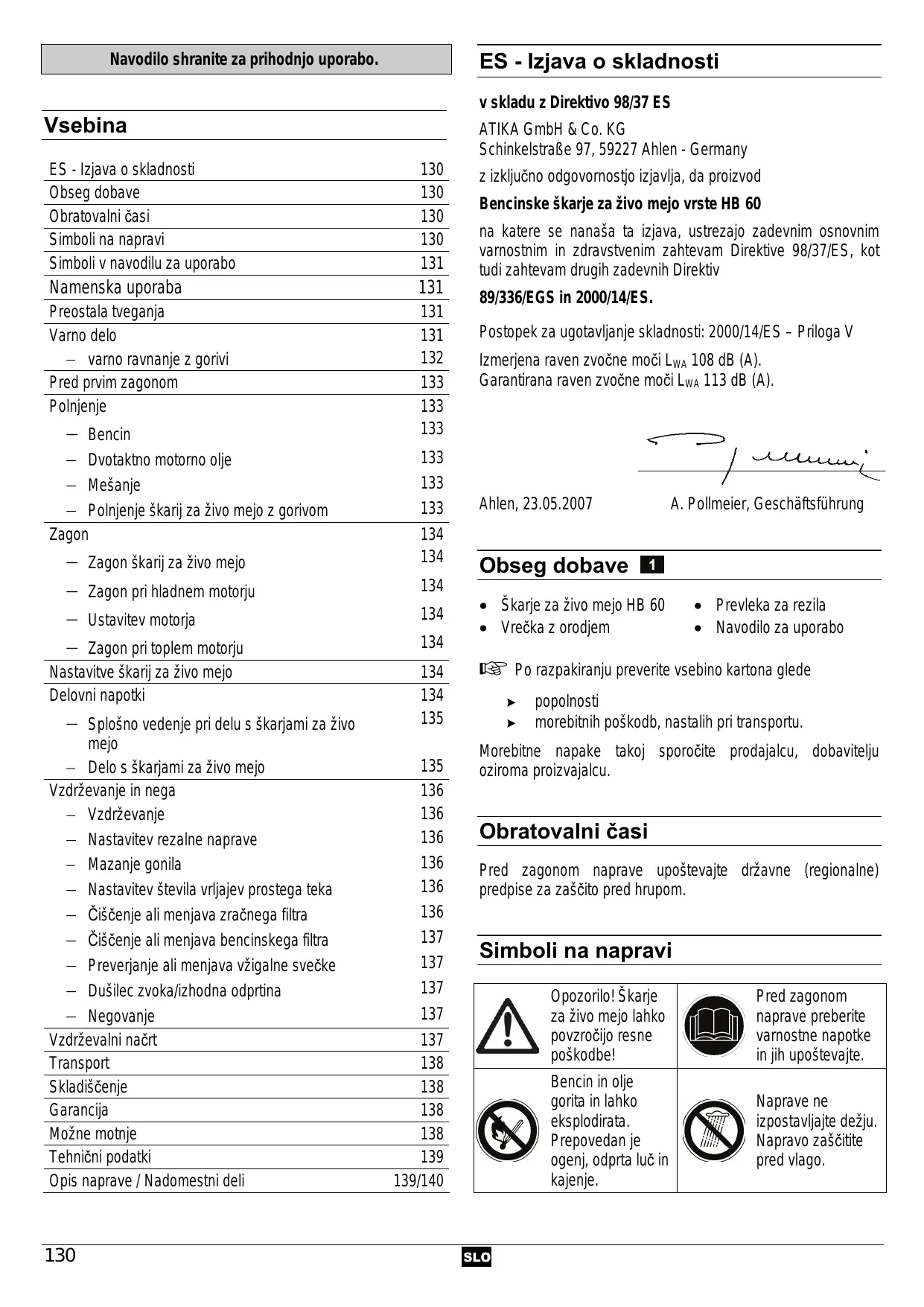 HB 60 - Bencinski obrezovalnik žive meje ATIKA - Brezplačna navodila za uporabo