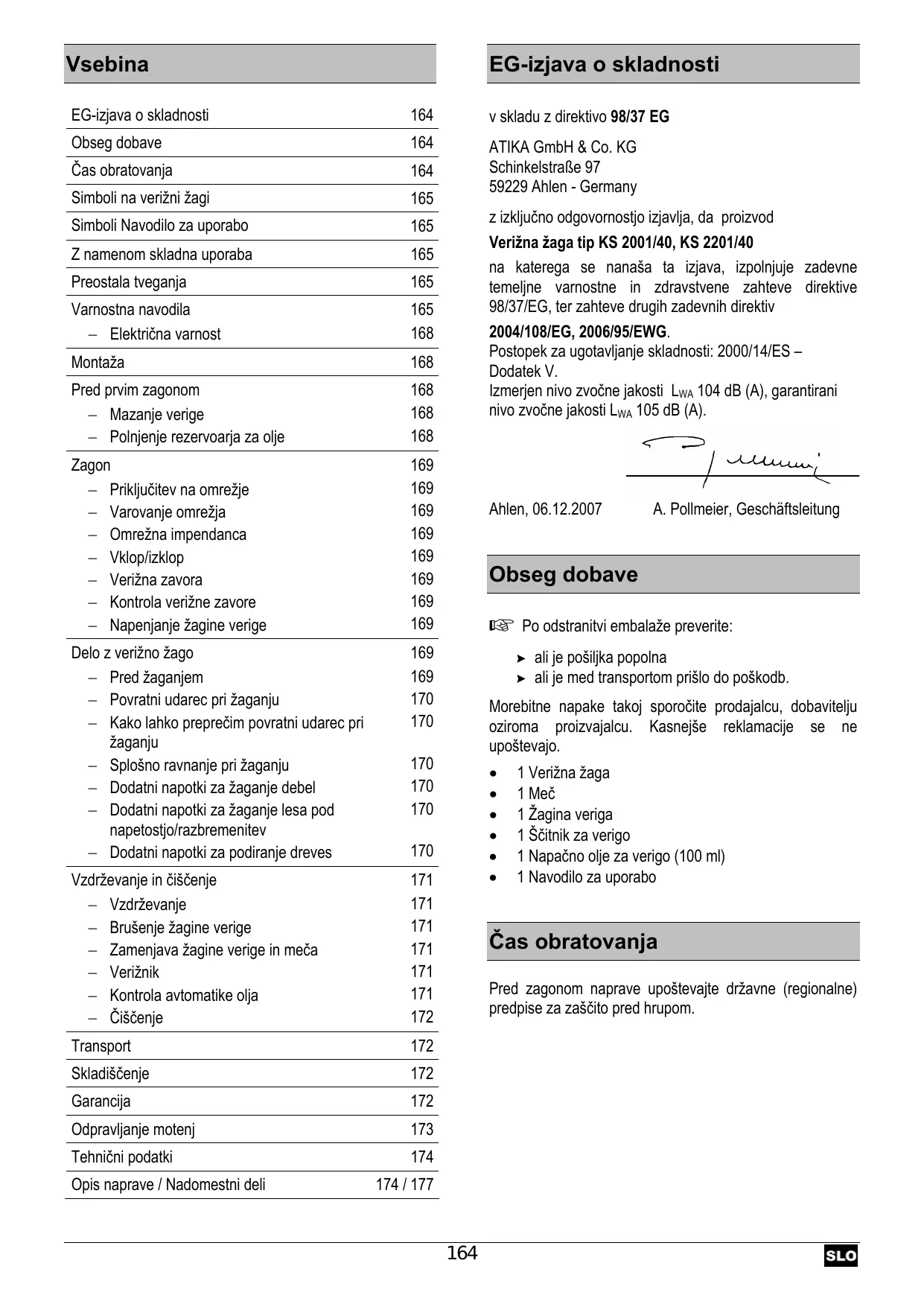 KS 2001 - Verižna žaga ATIKA - Brezplačna navodila za uporabo