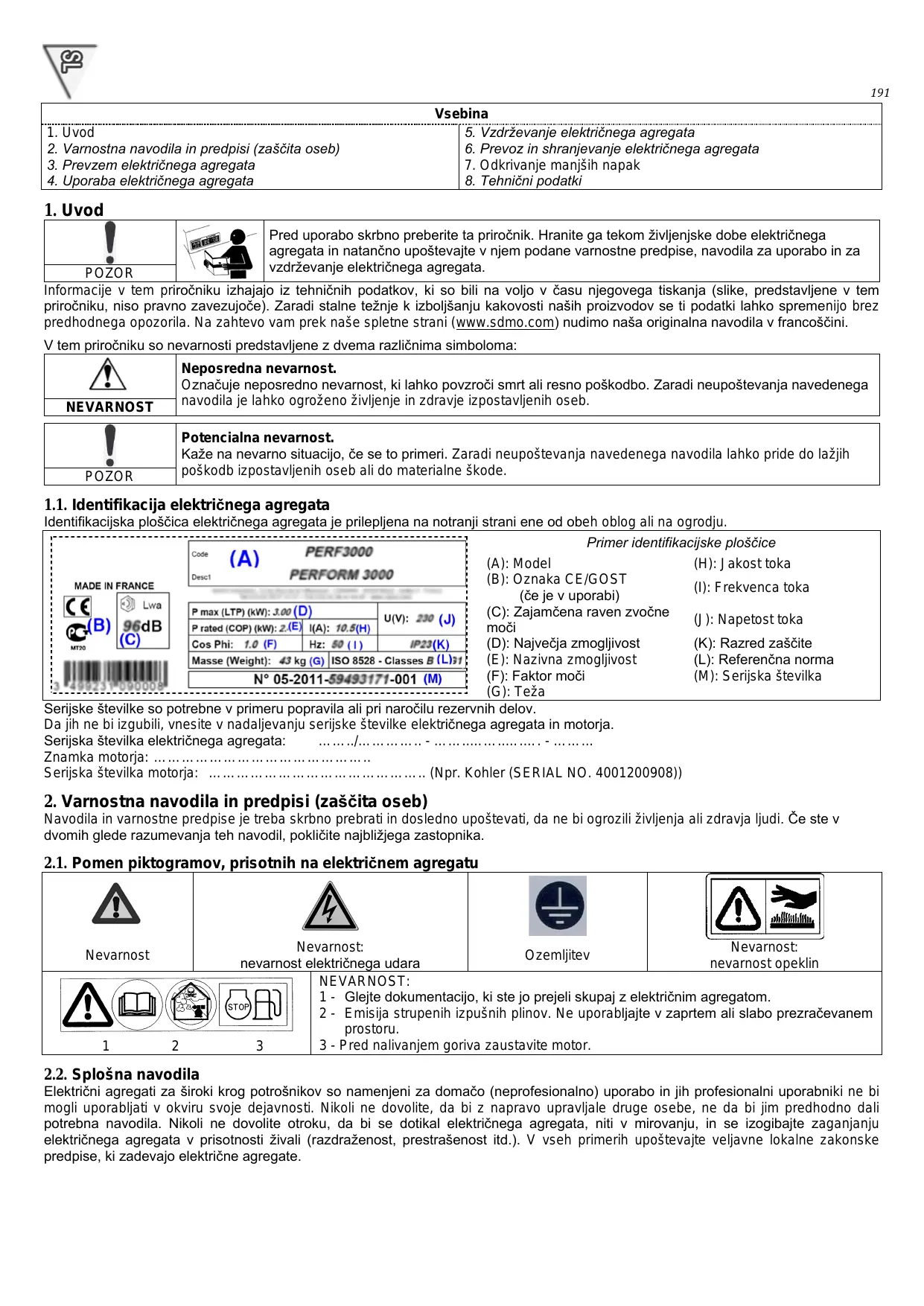 VARIO 2000I - Generator SDMO - Notice d'utilisation et mode d'emploi gratuit