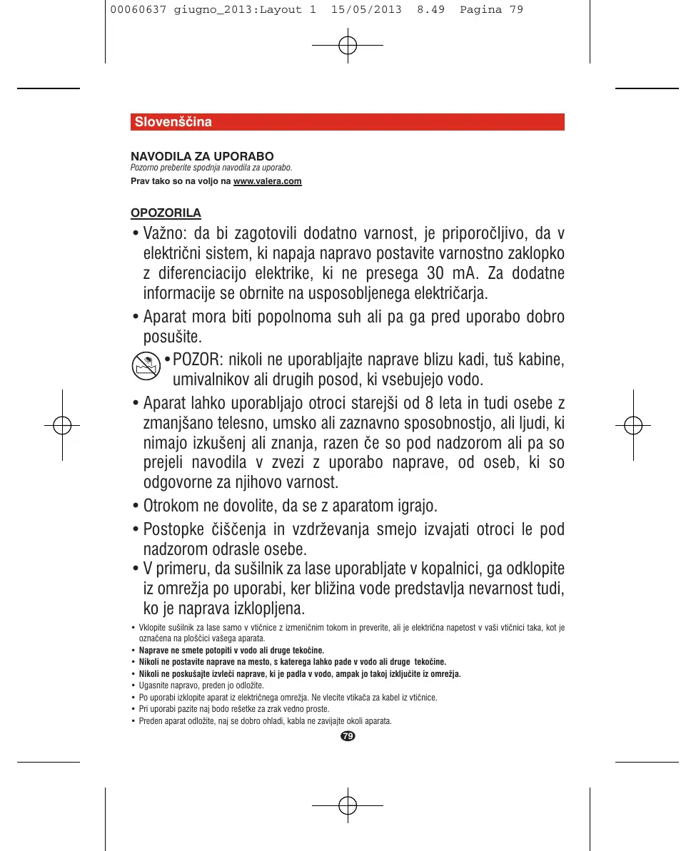 • Veillez à ne jamais obstruer les entrée et sortie d’air de l’appareil. • Laissez toujours l’appareil refroidir avant de le ranger, et, n’entourez pas le cordon électrique autour de l’appareil lors du stockage. • (Seulement Type 560.., 580.., 581.., 583.., 584..) Ce sèche-cheveux est destiné à un usage professionnel. Réglé sur une température maximale, l’appareil libère de l’air très chaud. En cas d’usage domestique, sélectionner une température plus basse et ne pas insister trop longtemps sur une même partie de la chevelure afin d’éviter d'abîmer les cheveux ou des lésions cutanées. Important Ce sèche-cheveux est conforme aux normes de sécurité relatives aux appareils électriques. Cet appareil est muni d’un thermostat de sécurité. En cas de surchauffe, il s’arrête automatiquement. Après un court délai, il se remet en marche. Cependant, avant toute nouvelle utilisation, vérifiez que les grilles d’entrée et de sortie d’air de l’appareil sont parfaitement propres. Cet appareil est conforme aux directives européennes 2004/108/CE, 2009/125/CE, 2006/95/CE et au règlement (CE)N. 1275/2008.