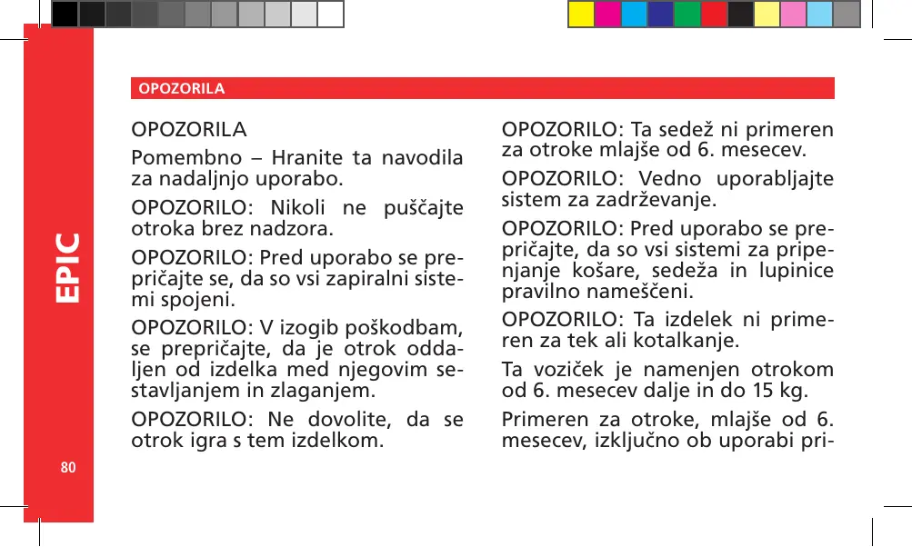 à des enfants de moins de 6 mois. AVERTISSEMENT Toujours utiliser le système de retenue. AVERTISSEMENT Vérifier que les dispositifs de fixation de la nacelle, du siège ou du siège-auto sont correctement enclenchés avant utilisation. AVERTISSEMENT Ce produit ne convient pas pour faire du jogging ou des promenades en rollers. Ce véhicule est conçu pour des enfants âgés de 6 mois à 15 kg.