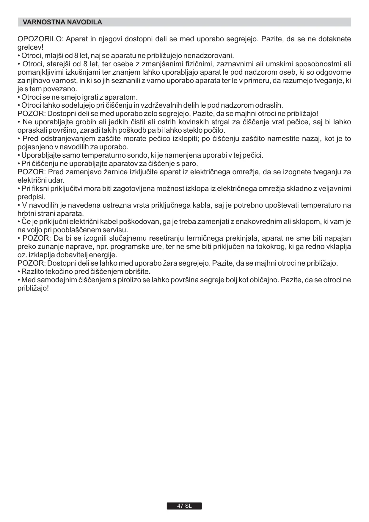 4.5 RECOMMANDATIONS Il est préférable de ne saler les viandes qu'en fin de cuisson, car le sel favorise les projections de graisse, donc un encrassage rapide du four et des fumées importantes.