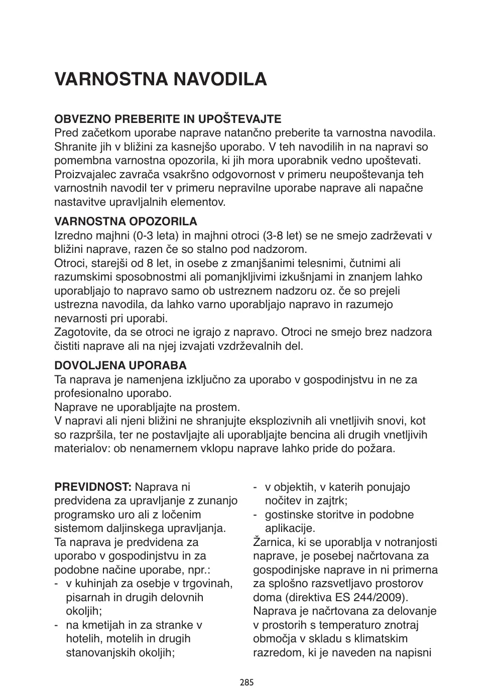 Les conserver à portée de main pour toute référence future. Les mises en garde contenues dans ces consignes de sécurité et sur l'appareil doivent toujours être respectées. Le fabricant décline toute responsabilité en cas de non-respect de ces consignes de sécurité, d'utilisation incorrecte de l'appareil ou de mauvais réglage des commandes. MISES EN GARDE Tenez les nourrissons (0-3 ans) et les jeunes enfants (3-8 ans) éloignés de l'appareil sauf en les tenant sous constante surveillance. Les enfants de 8 ans et plus ainsi que les personnes présentant des capacités physiques, sensorielles ou mentales réduites, ou ne possédant ni l'expérience ni les connaissances requises, peuvent utiliser cet appareil sous la surveillance ou les instructions d'une personne responsable leur ayant expliqué l'utilisation de l'appareil en toute sécurité, ainsi que les dangers potentiels. Ne laissez pas les enfants jouer avec l'appareil. Ne laissez pas les enfants nettoyer et procéder à l'entretien de l'appareil sans surveillance. EMPLOI AUTORISÉ Cet appareil est prévu pour un usage domestique et non professionnel. N'utilisez jamais l'appareil à l'extérieur. Ne stockez pas de substances explosives ou inflammables, comme des aérosols, et ne placez pas ou n'utiliser d'essence ou d'autres produits inflammables à proximité de l'appareil : un incendie pourrait se déclarer en cas de mise sous tension de l'appareil. ATTENTION ! L'appareil n'est pas prévu pour une utilisation au moyen d'une minuterie extérieure ou d'un système contrôlé à distance. Cet appareil a été conçu à des fins domestiques et pour des applications similaires, telles que : - cuisines pour le personnel de boutiques, bureaux et autres lieux de travail ; - gîtes et clients d'hôtels, de motels ou d'autres types d'hébergements ;