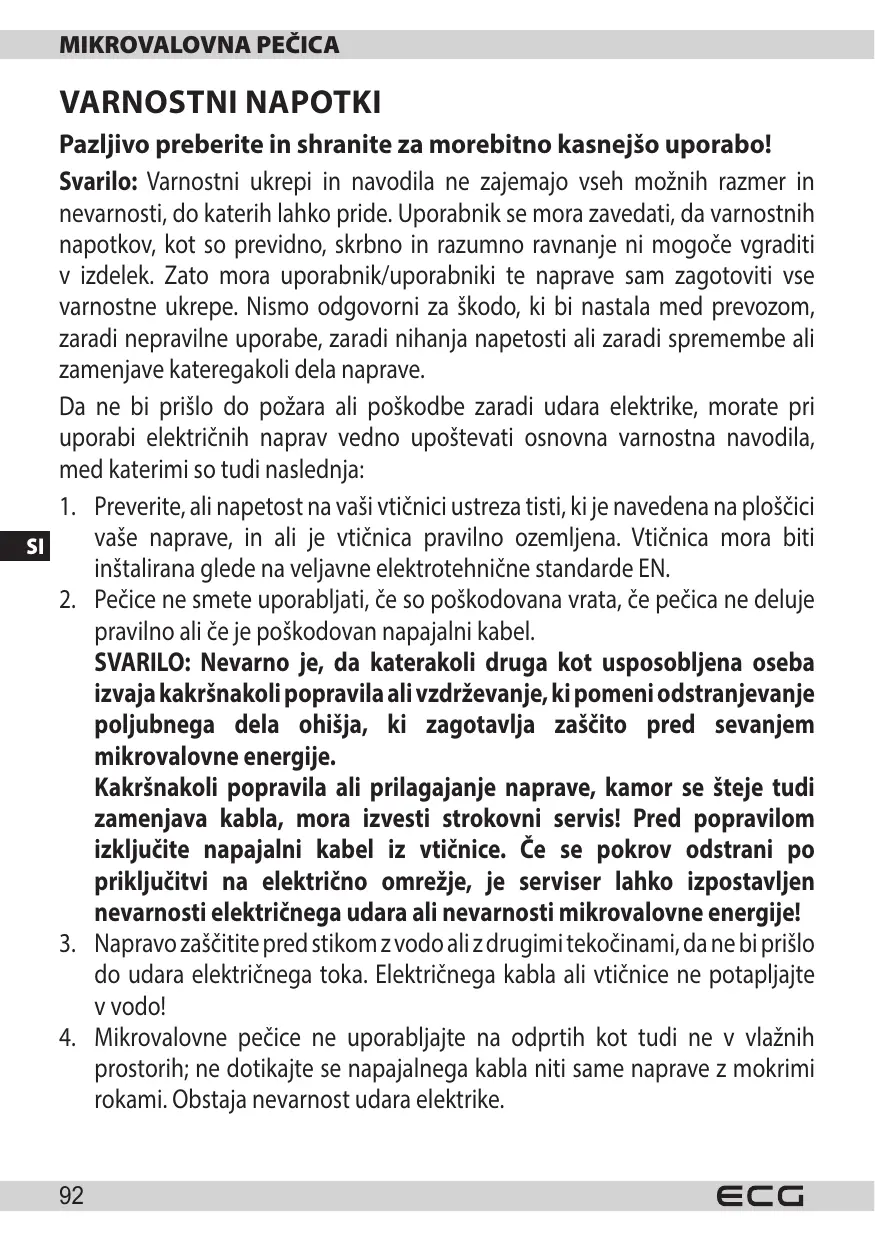 1. Mikrovalovna pečica je opremljena s kratkim el. kablom, da se zmanjša