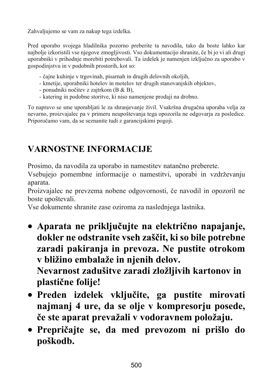 - dans les exploitations agricoles, pour la clientèle des hôtels, motels et autres environnements de type résidentiel - dans les hébergements Bed and Breakfast (B & B) - pour les services de restauration et des applications similaires non destinées à une vente au détail. Cet appareil doit être utilisé uniquement à des fins de conservation d'aliments, toute autre utilisation est considérée comme dangereuse et le fabricant ne sera pas responsable de toute omission. De plus, il est recommandé de prendre note des conditions de garantie.