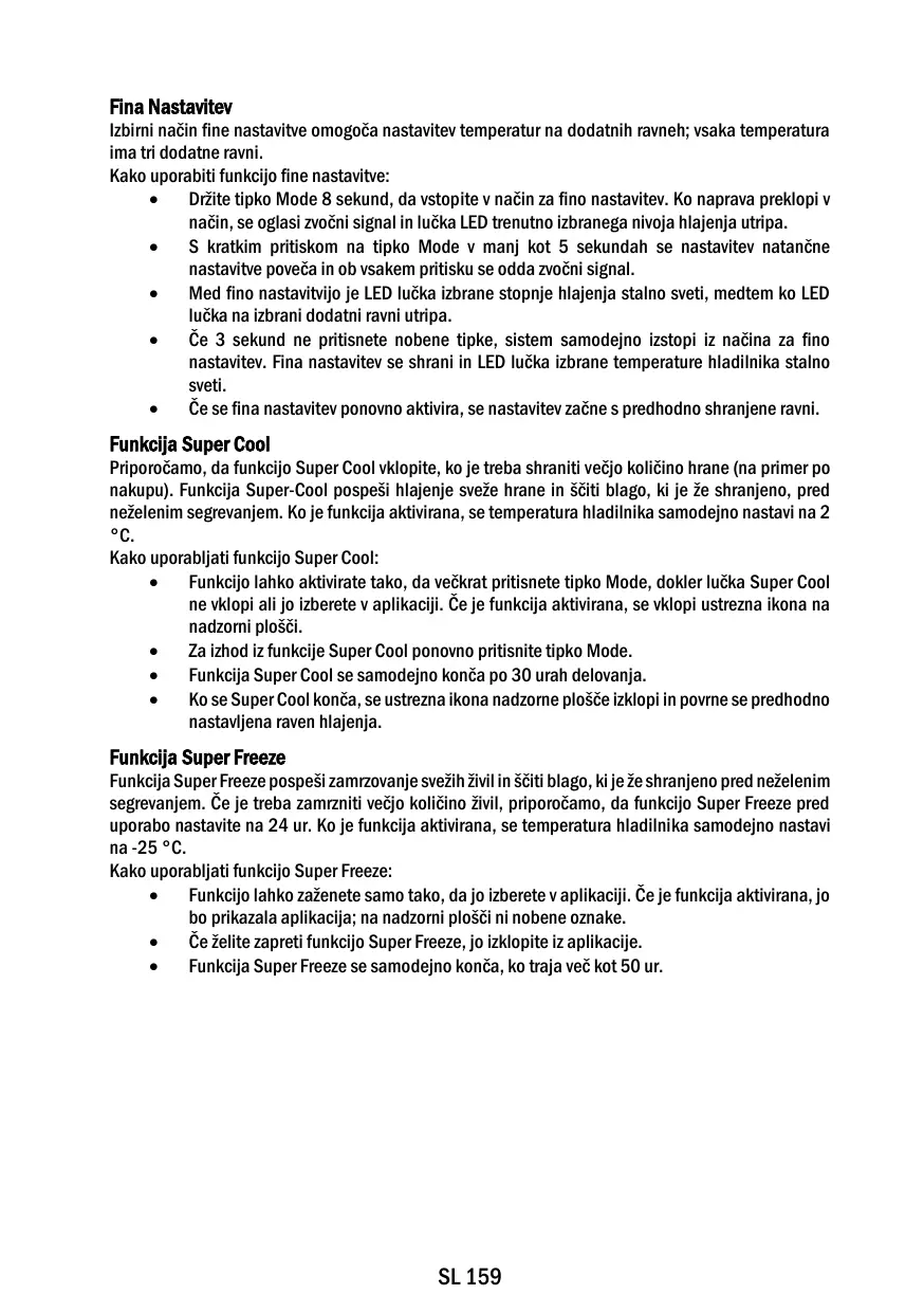 • En appuyant brièvement sur la touche Mode dans les 5 secondes, le réglage fin augmente et, à chaque pression, un signal sonore retentit. • Pendant le réglage fin, la LED du niveau de refroidissement sélectionné est fixe, tandis que la LED du sous-niveau sélectionné clignote. • Si aucune touche n'est enfoncée pendant 3 secondes, le système quitte automatiquement le mode réglage fin. Le réglage fin est enregistré et la LED de la température sélectionnée pour le réfrigérateur est fixée. • Si le réglage fin est activé à nouveau, le réglage commence à partir du niveau précédemment mémorisé.