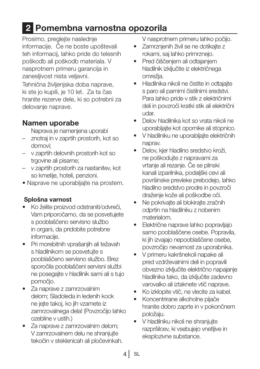 1 Vaš hladilnik 2 Pomembna varnostna opozorila
