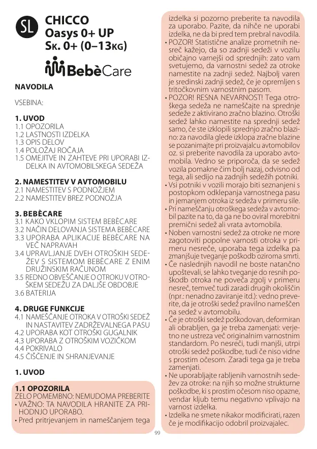 Téléchargez la notice de votre Avtosedež au format PDF gratuitement ! Retrouvez votre notice COSI OASYS UP - CHICCO et reprennez votre appareil électronique en main. Sur cette page sont publiés tous les documents nécessaires à l'utilisation de votre appareil COSI OASYS UP de la marque CHICCO.