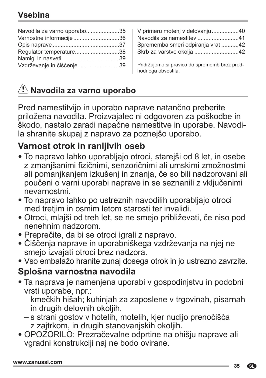 Téléchargez la notice de votre Hladilnik z zamrzovalnikom au format PDF gratuitement ! Retrouvez votre notice ZFG06400WA - ZANUSSI et reprennez votre appareil électronique en main. Sur cette page sont publiés tous les documents nécessaires à l'utilisation de votre appareil ZFG06400WA de la marque ZANUSSI.