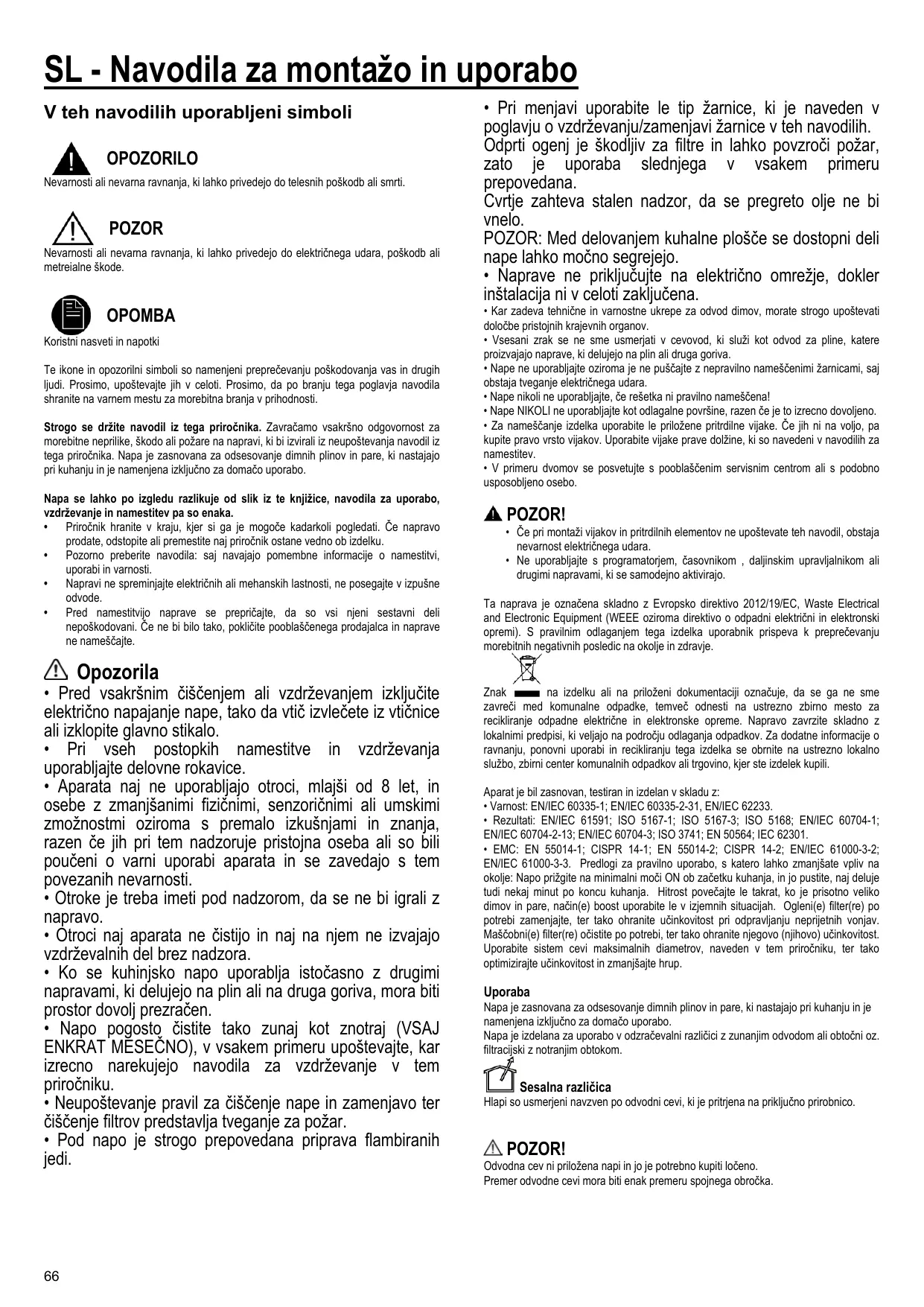 • Les enfants ne doivent pas jouer avec l’appareil. • Le nettoyage et l’entretien par l’usager ne doivent pas être effectués par des enfants sans surveillance. • La pièce doit avoir une aération suffisante lorsque la hotte est utilisée conjointement avec d'autres appareils fonctionnant au gaz ou autres combustibles. • La hotte doit être régulièrement nettoyée à la fois à l'intérieur et à l'extérieur (AU MOINS UNE FOIS PAR MOIS); cela devrait se faire en conformité avec les instructions d'entretien. Le non respect des instructions