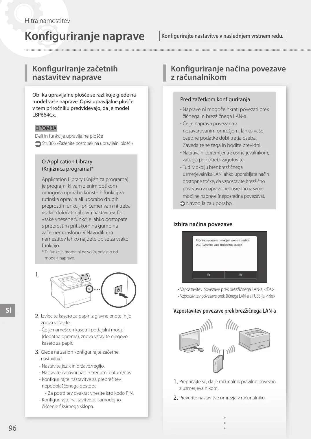 (Bibliothèque d'applications)* Application Library (Bibliothèque d'applications) vous permet d'utiliser des raccourcis associés à des boutons 1 touche pour les fonctions fréquemment utilisées, pour ne pas avoir à refaire tous les réglages correspondant à chaque utilisation de ces fonctions. Vous pouvez accéder à chaque fonction enregistrée en appuyant sur le bouton correspondant affiché sur l'écran d'accueil. Pour une description de chaque fonction, consultez le guide de configuration. Configuration de la méthode de connexion à un ordinateur Avant de commencer la configuration • Il n'est pas possible de connecter l'appareil à la fois à un réseau sans fil et à un réseau filaire. • Faites attention, si l'appareil est connecté à un réseau non sécurisé, vos données personnelles peuvent être divulguées à un tiers. • L'appareil n'est pas livré avec un routeur. Vous devez vous en procurer un. • Même dans un environnement sans routeur de réseau sans fil, vous pouvez utiliser le mode Point d'accès pour établir une connexion sans fil entre l'imprimante et votre appareil mobile (connexion directe). Guide de l'utilisateur
