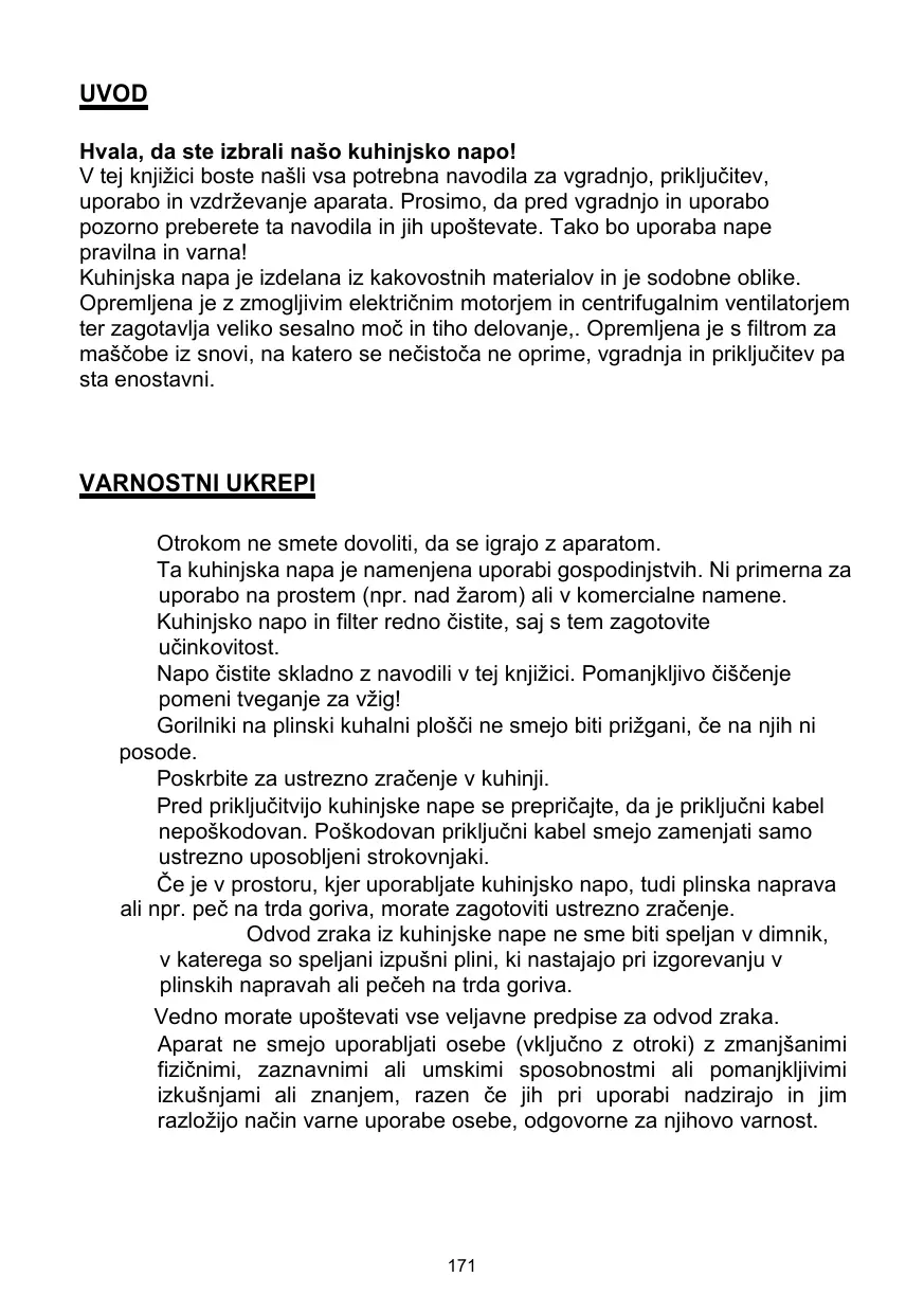 La hotte et ses filtres doivent être nettoyés régulièrement pour en garantir un bon état de fonctionnement Respecter les consignes de ce manuel pour le nettoyage de la hotte afin d’empêcher tout risque d’incendie Merci de garder une ventilation dans la cuisine Avant de connecter cet appareil, contrôlez que le cordon d'alimentation n'est pas endommagé. Un cordon d'alimentation endommagé doit être remplacé par une personne qualifiée. Il doit y avoir une ventilation adéquate de la pièce quand la hotte est utilisée en même temps que des appareils utilisant du gaz ou d'autres combustibles l'air ne doit pas être évacué par un conduit qui est utilisé pour évacuer les fumées des appareils utilisant le gaz ou d'autres combustibles